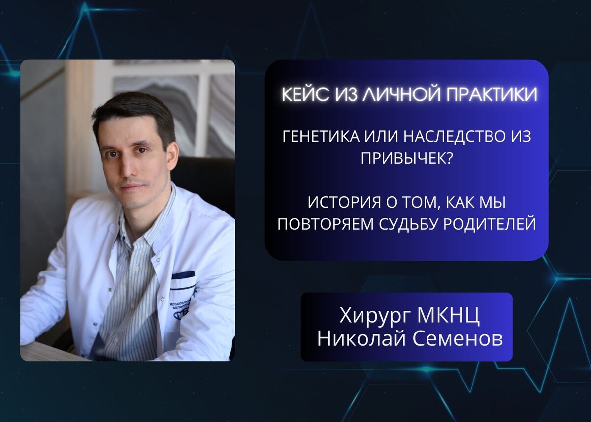 Часто мы живем в страхе перед «плохой наследственностью», забывая, что главная угроза кроется не в генах, а в нашем ежедневном выборе. Разберем это на примере одного тяжелого, но очень показательного клинического случая. 👤 Исходная ситуация Несколько лет назад в кабинет вошли двое: отец и сын. Они были похожи как две капли воды, но с разницей в 25 лет. У отца диагностировали плоскоклеточный рак пищевода. Он прошел через изнурительное лечение: тяжелую операцию, долгие курсы химиолучевой терапии. Сын был рядом на каждом этапе. Он видел боль, угасание и тяжелейшее восстановление отца. Казалось бы, такой опыт должен стать самым мощным триггером, чтобы изменить собственную жизнь. 📌 Главные ошибки пациента Страх часто ведет к отрицанию. Сын не сделал выводов. Более того, чтобы справиться с постоянным стрессом, он продолжал воспроизводить ровно тот же сценарий, что и его отец. Он выкуривал по пачке в день, «снимал напряжение» регулярным крепким алкоголем по выходным и обожал их давнюю сем