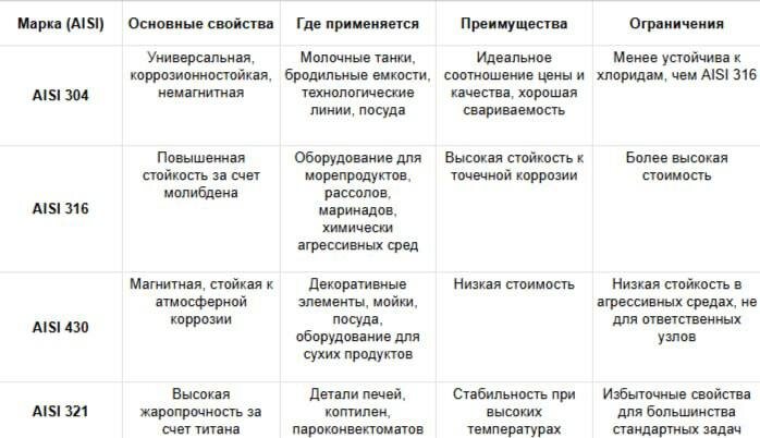 Как подобрать марку нержавейки для пищевого производства: полное руководство