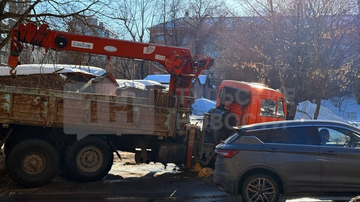 В Туле на улице Бундурина грузовик провалился в яму после ремонта труб