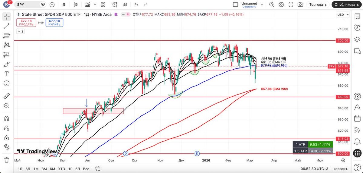 ждут сильные движения внутри дня. Наша стратегия не нарушена, и если присмотреться к широтам $S5TW, $S5FI, $S5OH, $S5TH, то все они ушли в зону перепроданности по RSI — значит, ставим на зеленый день широт = зеленый день на рынке. Однако, это не абсолютный минимум, и вполне можем оставаться в таком положении дольше или уйти еще ниже. #spy #технический_анализ #америка #трейдинг_сша #фондовый_рынок #обзор #вывод #qqq #vix #smh #mags #xlk #ixic
