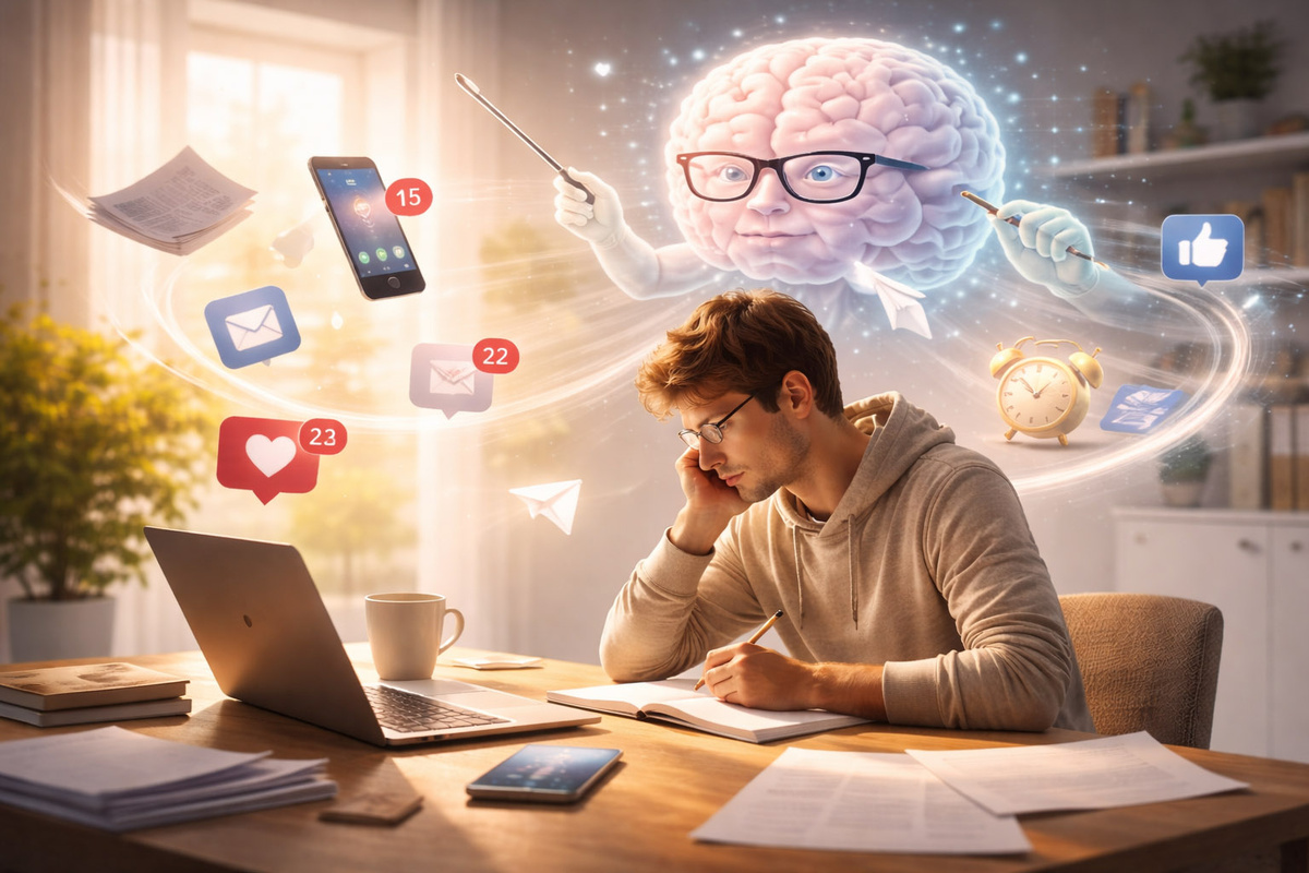 Сегодня второй день марафона «Фокус внимания» Вчера мы говорили о том, куда уходит энергия. Диагностика всегда даёт опору. Но после неё часто возникает вопрос: «Я всё понимаю, но почему продолжаю отвлекаться? Почему не могу заставить себя делать важное?» Ответ может удивить. У вашего мозга есть задача, о которой он никогда не сообщал. Она не записана в ежедневнике, но выполняется неукоснительно: избегать лишних затрат энергии. Всё новое, сложное, непривычное мозг по умолчанию воспринимает как угрозу ресурсу. И включает программу защиты. Внимание переключается на что-то знакомое, лёгкое, безопасное. Открыть соцсети вместо отчёта. Проверить почту вместо разговора с близким. Подумать о будущем вместо того, чтобы быть в настоящем. Мы привыкли называть это прокрастинацией и ругать себя за слабоволие. Но ругать себя — всё равно что ругать печень за то, что она фильтрует кровь. Прокрастинация — это не лень. Это механизм выживания, который вышел из-под контроля. В древности он спасал жизнь. Се