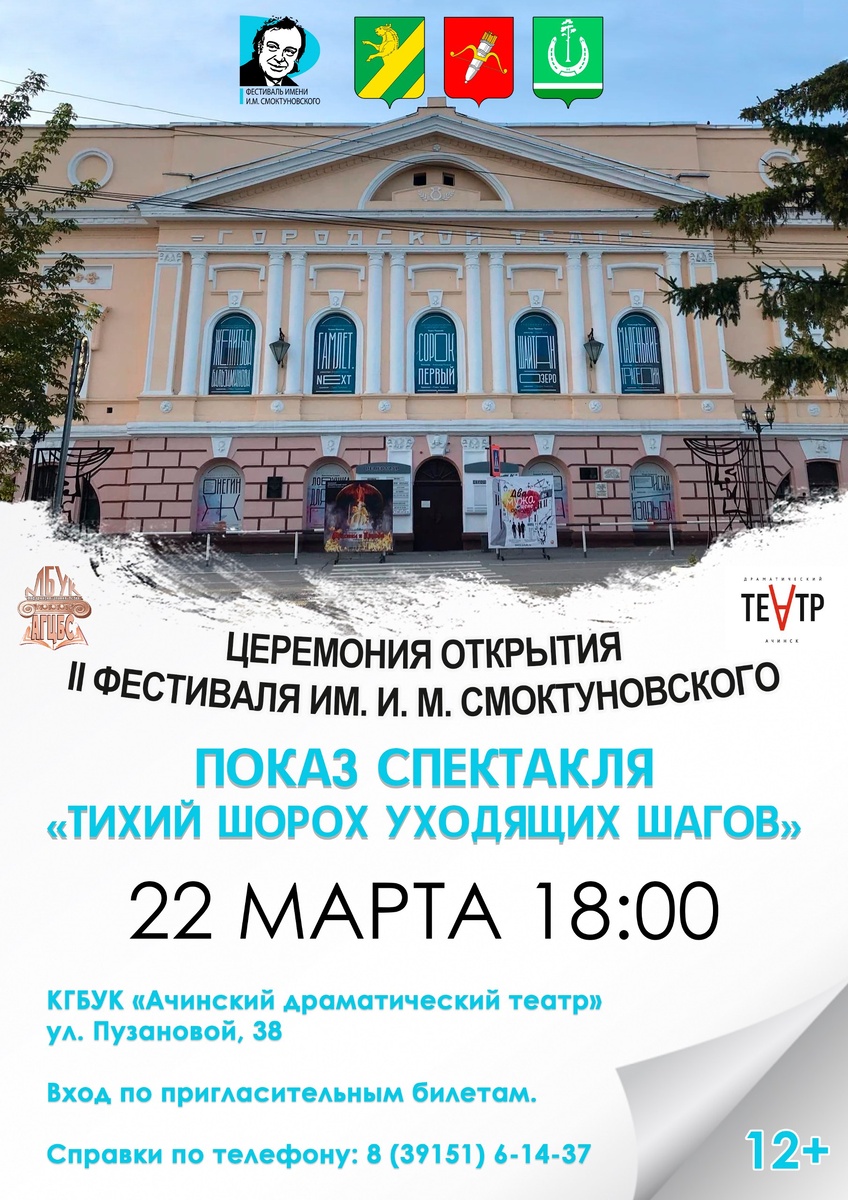 ! Приглашаем вас на церемонию открытия II Фестиваля имени И. М. Смоктуновского. Здесь вы почувствуете магию сцены и услышите «Тихий шорох уходящих шагов» – историю, которая не оставит никого равнодушным. Будем рады видеть вас среди гостей! Хотите узнать обо всех мероприятиях Фестиваля? Переходите по ссылке – вас ждёт насыщенная программа и множество удивительных открытий! https://agcbs.ru/festival-imeni-im-smoktunovskogo/plan-meropriyatij-festivalya #СмоктуновскийФест