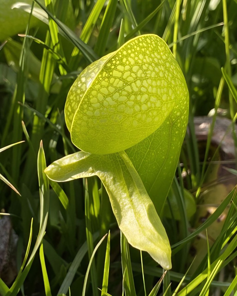 Darlingtonia) — уникальное плотоядное растение, единственный представитель рода в семействе Саррацениевые 😍🌿 Произрастает на Западном побережье США, в Северной Калифорнии и Южном Орегоне. Растёт на болотах и влажных склонах с проточной прохладной водой. Характерной особенностью вида является необычная форма листьев-ловушек, с «раздутым» основанием и капюшоном, напоминающим голову змеи с «раздвоенным языком». За это Дарлингтиния получила народное название «растение‑кобра». На верхней части капюшона — многочисленные прозрачные пятна-окна, сквозь которые внутрь ловушки проникает свет. Они создают иллюзию выхода: насекомые бьются о них, постепенно теряя силы. Затем жертва соскальзывает по гладким стенкам в нижнюю часть кувшина, заполненную пищеварительным соком. Пищеварительные ферменты постепенно расщепляют добычу, и растение усваивает питательные вещества. Отдельного внимания заслуживает также «язык» Дарлингтонии — длинный, узкий вырост, покрытый направленными вниз волосками, служи