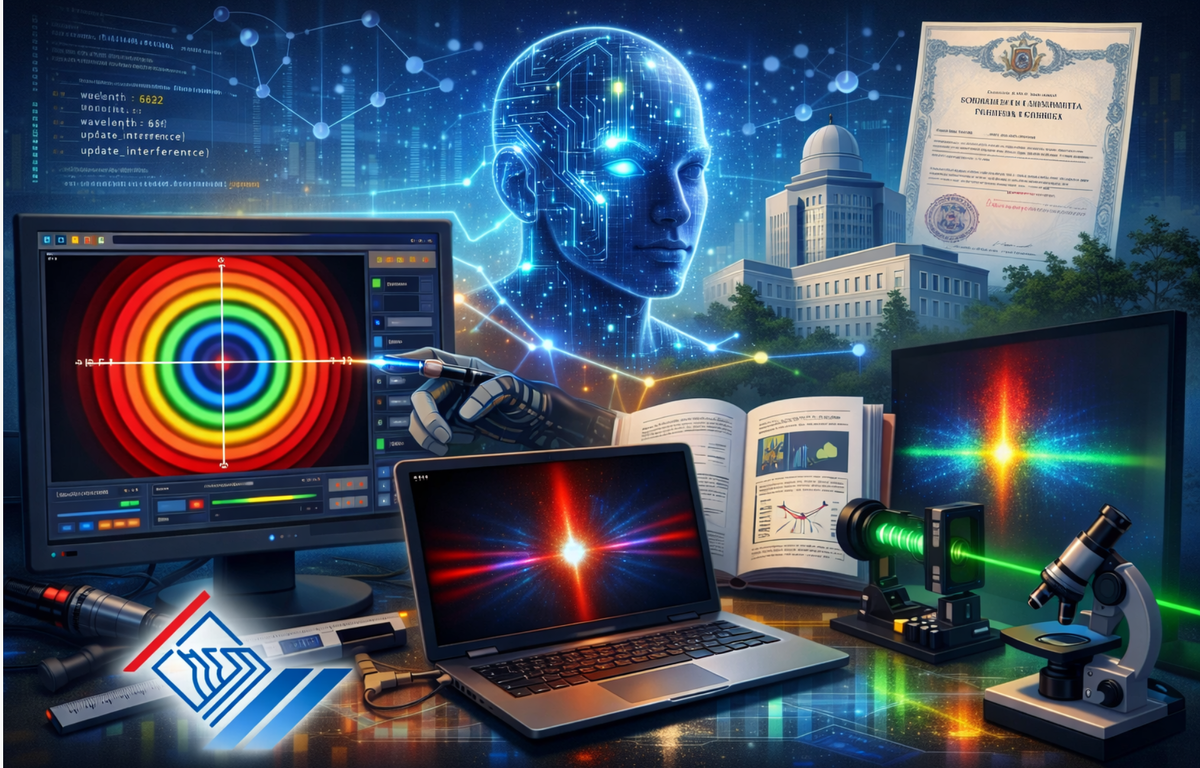 Ученые Нижегородского государственного технического университета им. Р.Е. Алексеева получили свидетельства от Федеральной службы по интеллектуальной собственности Российской Федерации о государственной регистрации двух новых программ для ЭВМ. Первая программа под № 2026613864 называется «Лабораторная работа № 3–41 по общей физике. Интерференция света. Наблюдения колец Ньютона в установке с лазером». Ее авторами являются сотрудники НГТУ: Балашова Татьяна Ивановна, Вдовиченко Ирина Анатольевна, Фадеев Дмитрий Сергеевич, Стручков Антон Олегович, Котов Владимир Владимирович и Моисеев Илья Игоревич. Программа имитирует лабораторную работу по наблюдению колец Ньютона, предоставляя следующие возможности: 1.Визуализация интерференционной картины (системы светлых и темных колец) в зависимости от параметров установки; 2.Автоматический расчет цвета интерференционной картины на основе длины волны; 3.Проведение измерений радиусов колец с помощью встроенной шкалы. Разработанное программное обеспечен