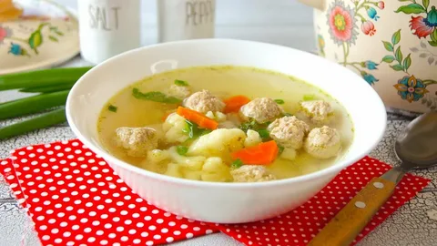 - После закипания варить суп ещё в течение 15-20 минут, чтобы картофель и фрикадельки полностью приготовились.