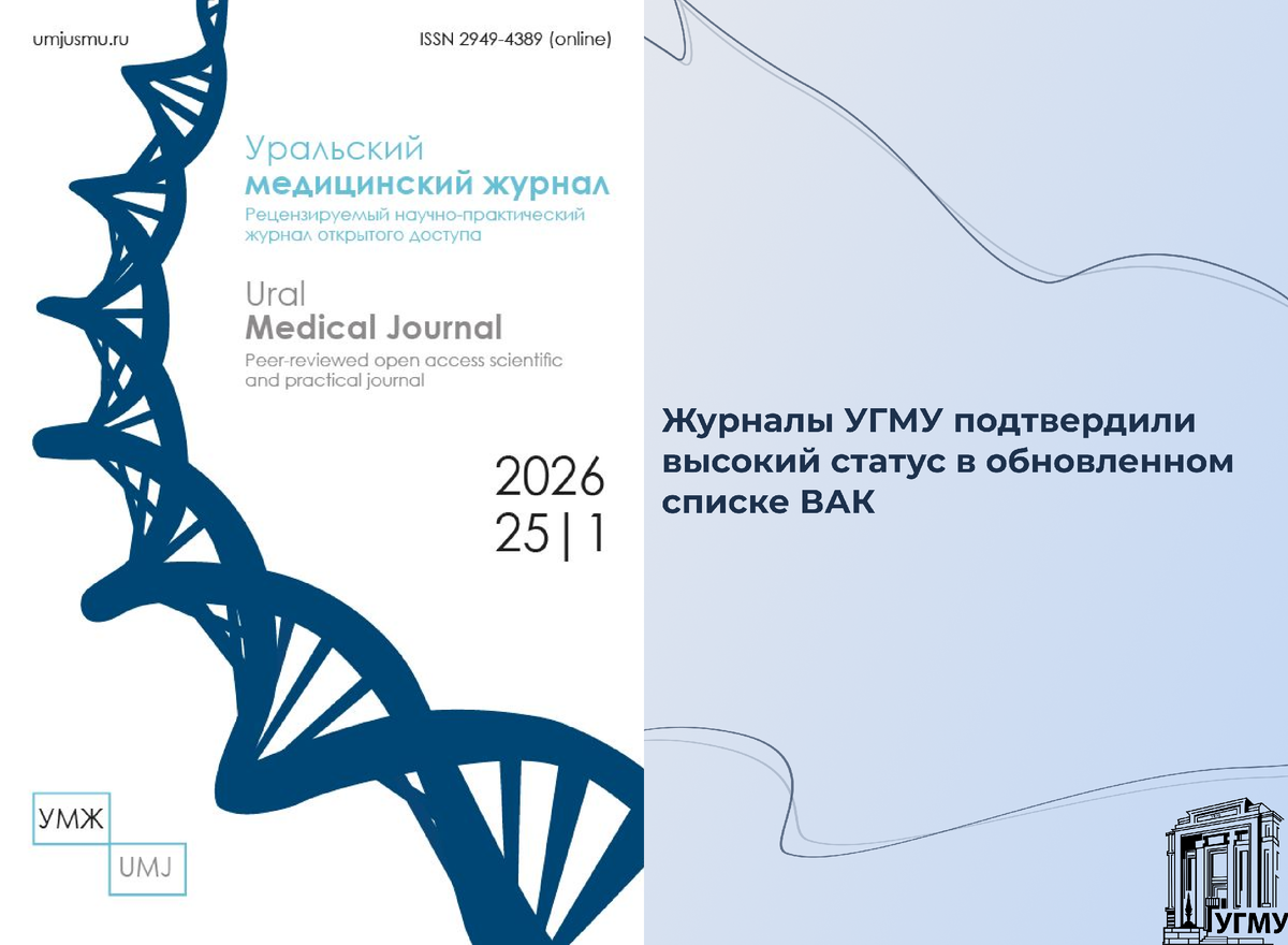 — «Вестник уральской медицинской академической науки» Это означает, что журналы соответствуют требованиям научной экспертизы, академического качества и актуальности публикуемых исследований. Для университета наличие собственных журналов в перечне ВАК имеет стратегическое значение. Такой статус подтверждает высокий уровень научной работы и позволяет исследователям публиковать результаты своих исследований на авторитетной академической площадке. Кроме того, публикации в журналах, входящих в перечень ВАК, являются обязательным этапом подготовки и защиты кандидатских и докторских диссертаций. Журналы УГМУ также служат площадкой для обсужде