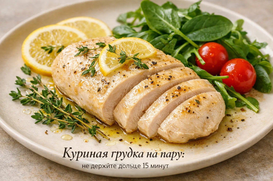 Куриная грудка на пару — это не скучная диетическая еда для тех, кто считает каждую калорию и ненавидит свою жизнь. Это полноценное, вкусное и элегантное блюдо, если подойти к нему с умом. Лимон и тимьян превращают пресное филе в нечто ароматное и запоминающееся. Пар сохраняет сочность, которой невозможно добиться на сухой сковороде без опыта. А правило пятнадцати минут защищает от самой частой ошибки, которую совершают девять из десяти домашних кулинаров.
