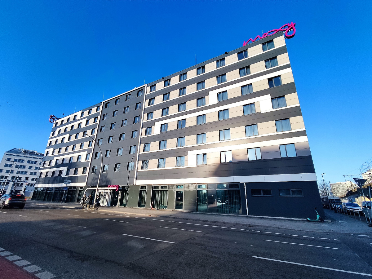 Берлин является столицей и крупнейшим городом Германии и представленность крупнейших отельных сетей в городе довольно широкая. Одних только отелей под брендом Moxy из портфолио брендов Marriott в Берлине аж целых три. Наиболее удобно расположенным из них является Moxy Berlin Ostbahnhof. Не считая отдельных пиковых периодов, стоимость проживания в данном отеле находится в диапазоне 85€-131€ без учета налогов.