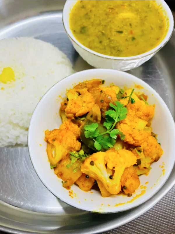 ✔️ Cauliflower potato fry Жареная цветная капуста с картофелем — это полезное, вкусное, питательное и ароматное блюдо. Лук и болгарский перец добавляются для придания блюду объема и дополнительного вкуса. В Южной Индии его обычно подают с простым рисом и самбаром или далом. ⏳ Время приготовления: 45 мин. 👪 4 порции 📜 Что понадобится: 1 большой клубень картофеля 1 и 1/2 стакана соцветий цветной капусты 1 репчатый лук 1 мелкий стручковый перец паприка 1/4 ч. л. семян горчицы 3 зубчика чеснока 1 веточка листьев карри (7-10 шт.) 1/2 ч. л. куркумы 1/2 ч. л. молотого чили 1/2 ч. л. молотого кашмирского чили 1 ч. л. касури мети (листьев пажитника) 4 стебля листьев кориандра (кинзы) соль по вкусу 3 ст. л. растительного масла ♨️ Как приготовить: Отварите картофель "в мундире". Снимите кожуру и нарежьте кубиками. Бланшируйте соцветия цветной капусты в горячей воде с солью в течение 10 мин. Процедите и отставьте в сторону. Нагрейте масло на сковороде. Обжарьте семена горчицы до потрескивания,