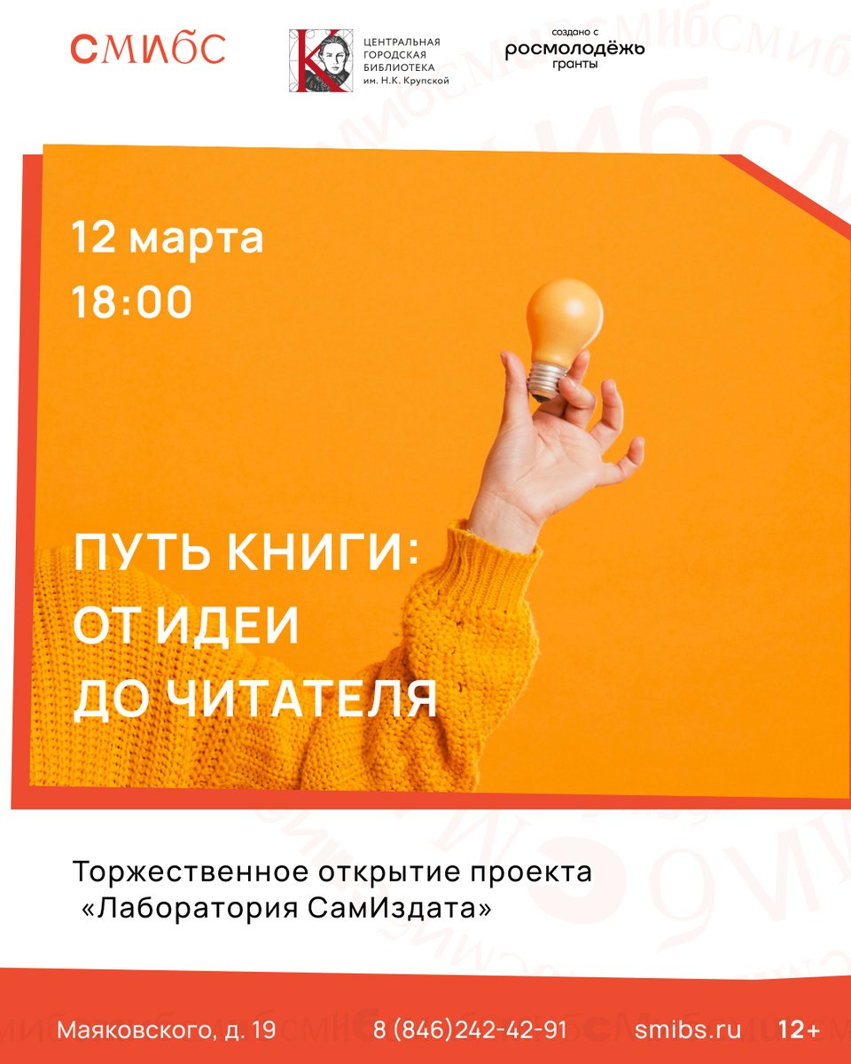 В среду, 12 марта, в 18:00 в Самаре состоится открытие мини-типографии. Проект под названием «Лаборатория СамИздата» на базе Центральной городской библиотеки имени Крупской поможет всем желающим освоить основы самиздата, получить консультацию на всех этапах создания собственных книг и публикаций, посетить обучающие лекции и мастер-классы, принять участие в выставках и ярмарках, организованных библиотекой. Целевая аудитория — молодые люди, увлечённые искусством и литературой, желающие попробовать себя в самостоятельном издании книг и иной печатной продукции. В день открытия в библиотеке гостей ждут эксперты: писатели Андрей Олех и Леонид Немцев, кандидат филологических наук, преподаватель Анна Синицкая, фотограф Сергей Осьмачкин, сказочник Денис Либстер. Они поделятся личным опытом поиска идей и работы над текстом, расскажут, как снять страх «чистого листа», приведут примеры литературных приёмов, объяснят, как фотография становится книгой и почему визуальные форматы сейчас набирают попу