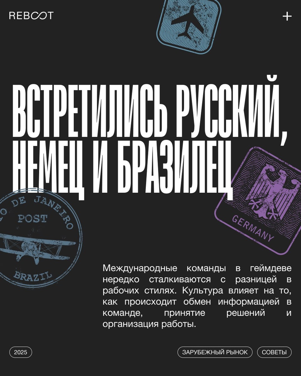 Продолжаем наш рассказ о культурных особенностях разных стран мира, в контексте digital-проектов В феврале 2024 мы начали сотрудничество с Gameforge – немецкой студией разработки видеоигр. Вместе с ними создали сайт для UGC платформы с открытым миром – Cubio. Главной для нас стала задача адаптировать проект для Бразильской аудитории, работая с немецким заказчиком. И вот, что мы поняли: Немецкие команды 🇩🇪 — Ценят структуру, график, планирование, логику и пунктуальность — Встречи по расписанию — Задачи в таск-трекере, дедлайны — Не тратят время на смол-токи, сразу переходят к сути — ОС дают однозначно, что с непривычки воспринимается резко — Коммуникация формальная – с протоколами и письменными договорённостями Бразильские команды 🇧🇷 — Гибко управляют несколькими задачами, меняют приоритеты и могут отвлечься на эмоциональное обсуждение — Коллеги часто становятся друзьями — В корпоративных чатах нередки смайлы, мемы, поздравления – смесь работы и личного — Начальник – наставник, пр