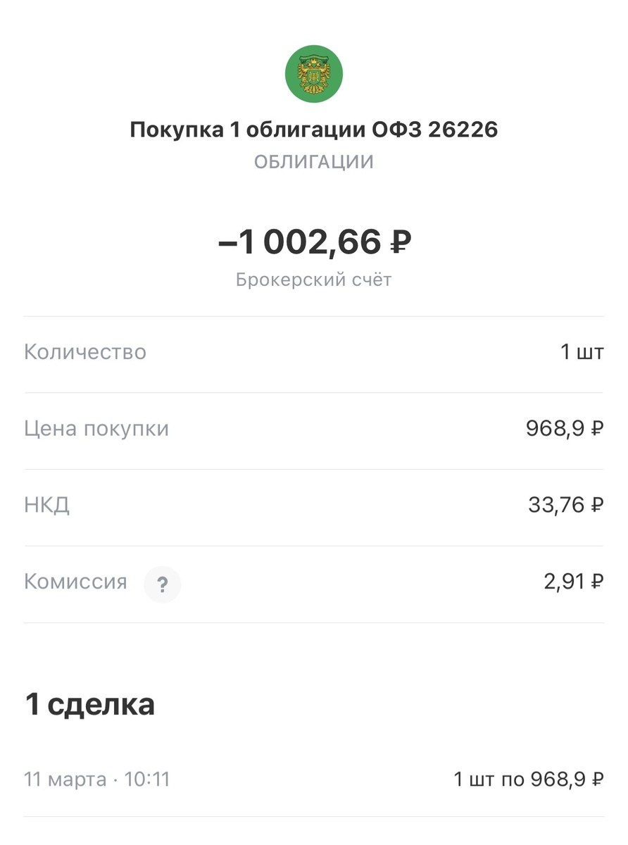 Покупаю в основном краткосрочные облигации и фонды раз в неделю. На этой неделе решила взять третью ОФЗ 26226.