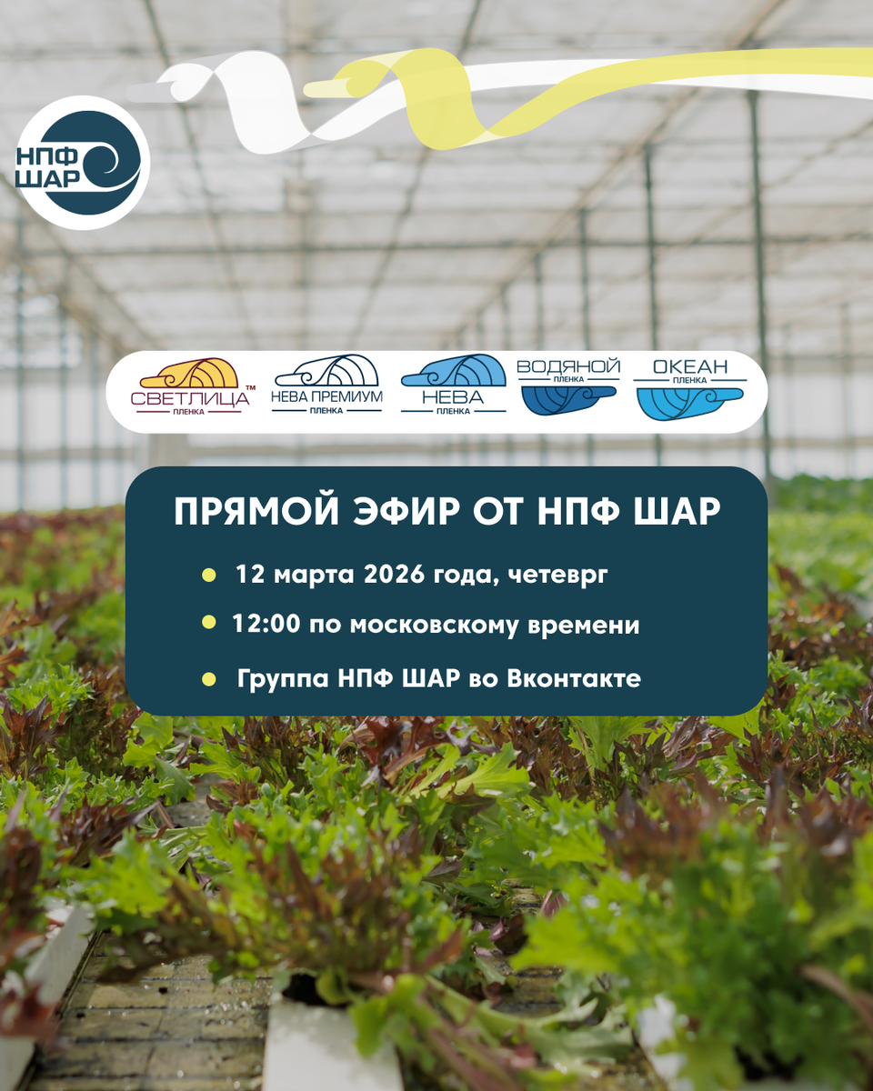 Сегодня (12 марта) в 12:00 проведём прямой эфир с руководителем отдела маркетинга НПФ «Шар» Евгением Алексеевым. Тема эфира: Секреты богатого урожая: как выбрать идеальное укрытие для ваших растений? В эфире подробно разберём виды укрывных материалов, о правилах крепления, обработки теплиц и ответим на ваши вопросы в режиме реального времени. ❗️Важно: прямой эфир пройдёт в нашей группе ВКонтакте. Если вы хотите задать вопрос во время трансляции — подключайтесь к эфиру со своего аккаунта ВК и пишите в чат. Также вы можете заранее оставить вопросы в комментариях под этим постом — мы обязательно учтём их при подготовке и разберём в эфире. Будем рады вашему участию! 🗓 12 марта в 12:00 📌 Наша группа ВКонтакте: https://vkvideo.ru/video-79440244_456242021?sh=4