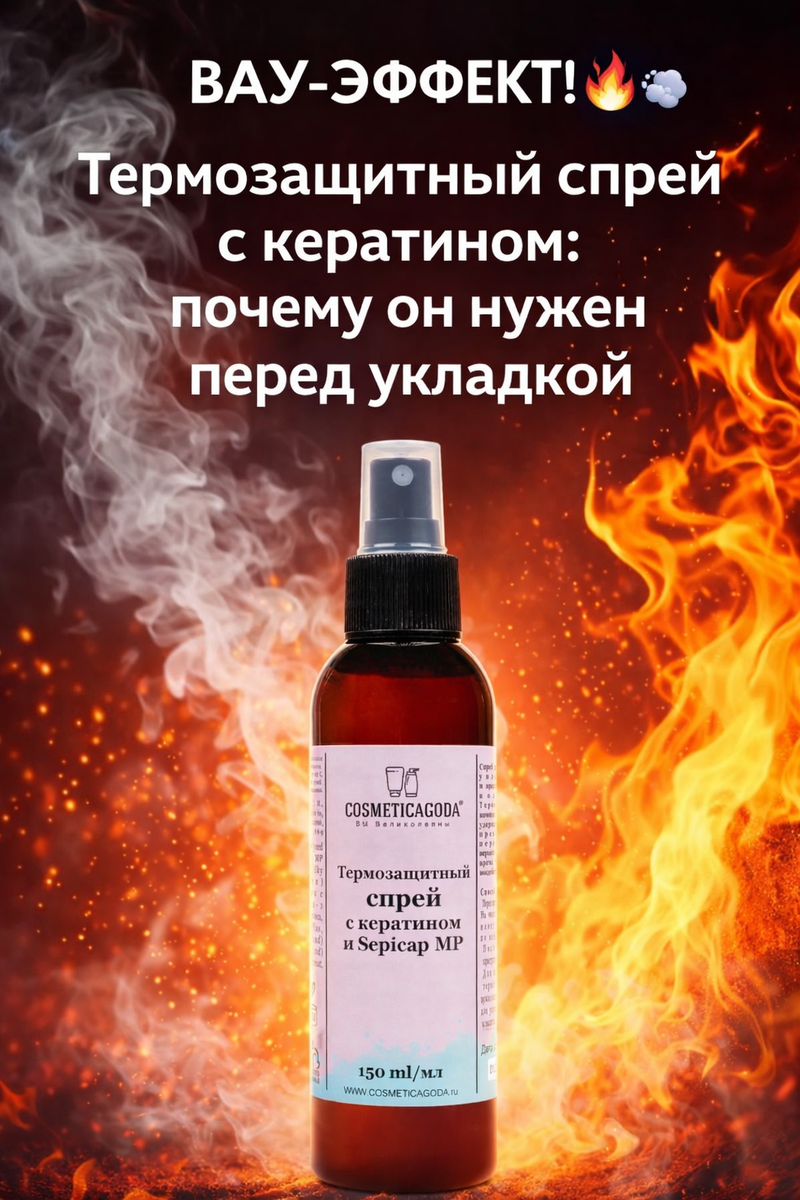 Сегодня термозащитные спреи стали частью ежедневной рутины укладки, и один из современных форматов — термозащитный спрей с кератином COSMETICAGODA.