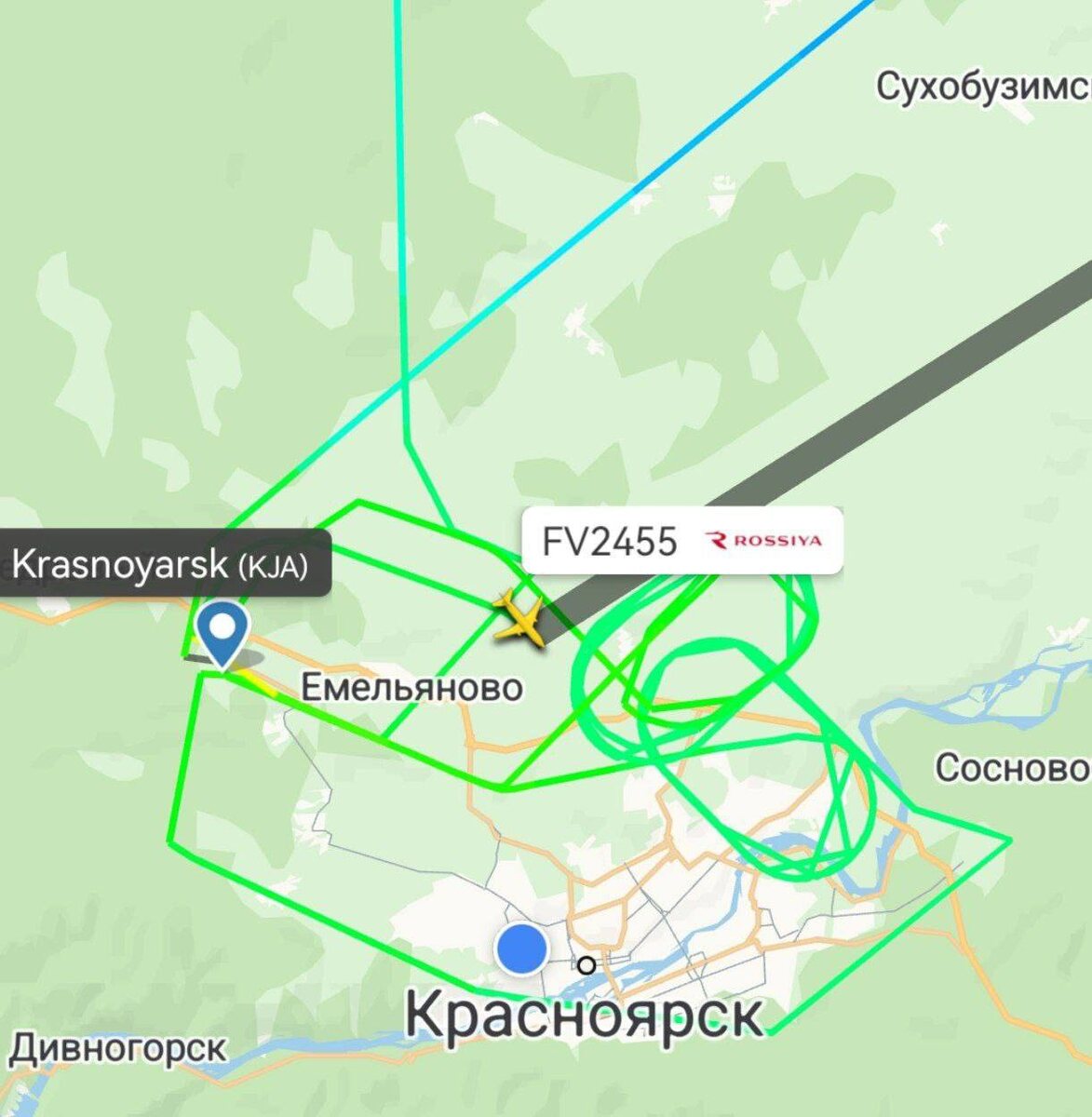 Самолёт, следовавший рейсом Красноярск — Якутск, уже около двух часов кружит над Красноярском, вырабатывая топливо перед аварийной посадкой