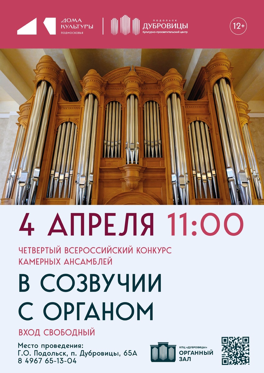 ✨ IV Всероссийский конкурс камерных ансамблей «В созвучии с органом»💥 ⚡ Конкурс будет проходить по следующим номинациям:⚡ • Орган и вокал • Орган и фортепиано/струнные/духовые инструменты. К участию приглашаются: • Студенты музыкальных колледжей, вузов и учащиеся старших классов музыкальных школ. ✅ до 22 марта 2026 года отправьте на konkurs.mo@bk.ru - анкету-заявку - справку из учебного заведения; 📌 Положение https://clck.ru/3SSgko 8(915) 043-47-39 Юлия Александровна 📆 04.04.2026 🏢 Культурно-просветительский центр "Дубровицы" 📍 г.о. Подольск, поселок Дубровицы, д. 65А ⭐Поддержать канал голосом 🍰Где поесть в Подольске ✅ Мероприятия Подольск https://dzen.ru/id/66ed500f7b5671493eca3fd6 https://vk.ru/podolsk_events http://dzen.ru/podolsk_events