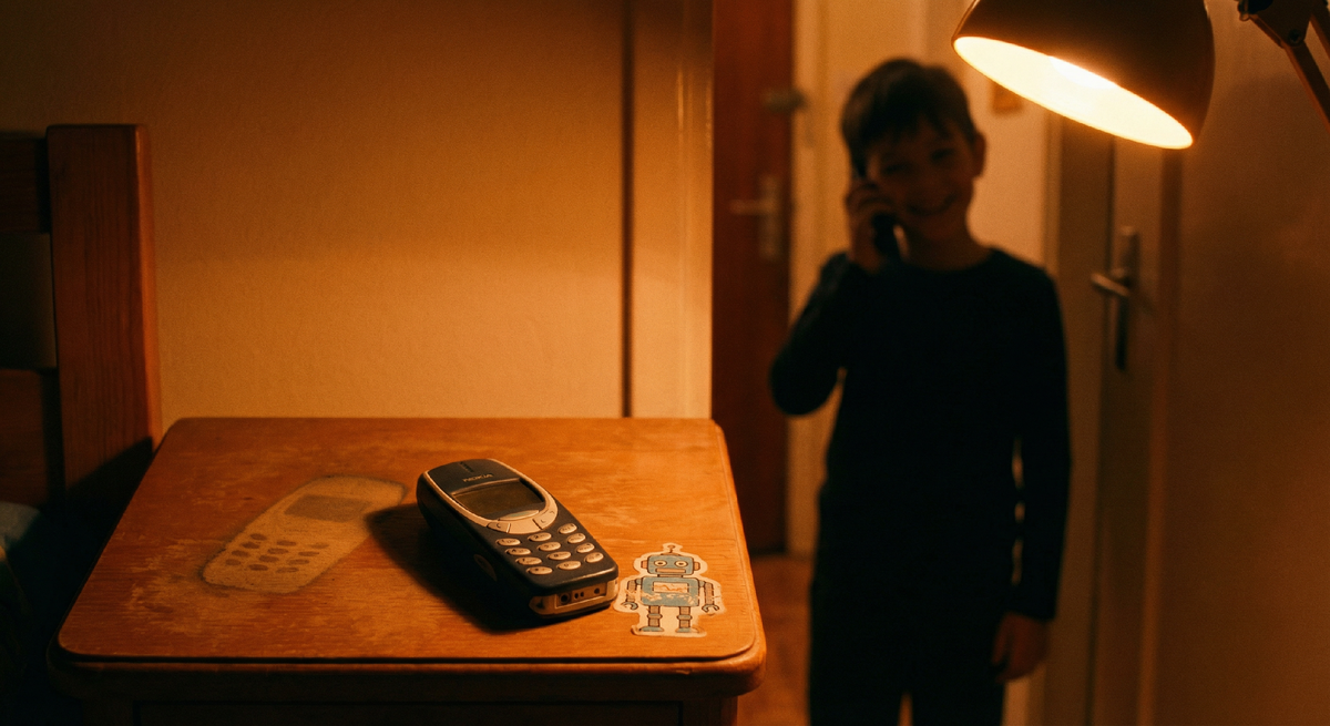 И всё. Больше ничего не надо говорить. Лёня убегает обратно. А я стою, режу лук и думаю – телефон тот же. Наклейка та же. Но теперь на том конце – не запись. На том конце – голос, который отвечает. И Лёня больше не ждёт. Он зовёт.