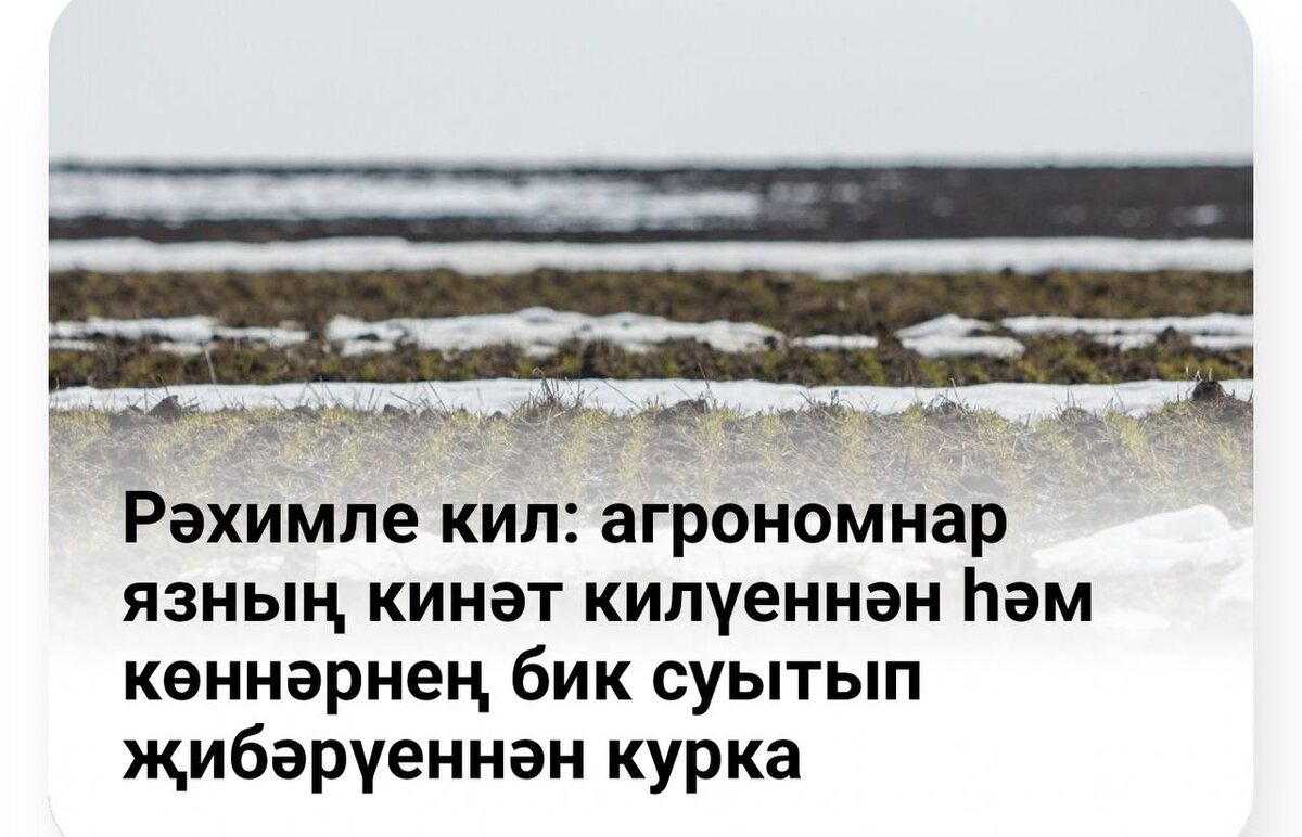 Узган көздә Татарстан басуларына 485 мең гектар мәйданда уҗым культуралары чәчелгән иде. Кар мул булган кыш артык мәшәкатьләр тудырмаса да, агрономнар язның кинәт килүеннән, аннан соң көннәрнең бик суытып җибәрүеннән курка. Алай булганда үсемлекләр, боз элпәсе белән капланып, һәлак булырга мөмкин. Көзге культуралар кышны ничек чыга? Шуны белештек 👇🏻 https://vatantat.ru/news/raximle-kil-agronomnar-iaznyn-kinat-kiluennan-ham-konnarnen-bik-suytyp-ibaruennan-kurka-113082