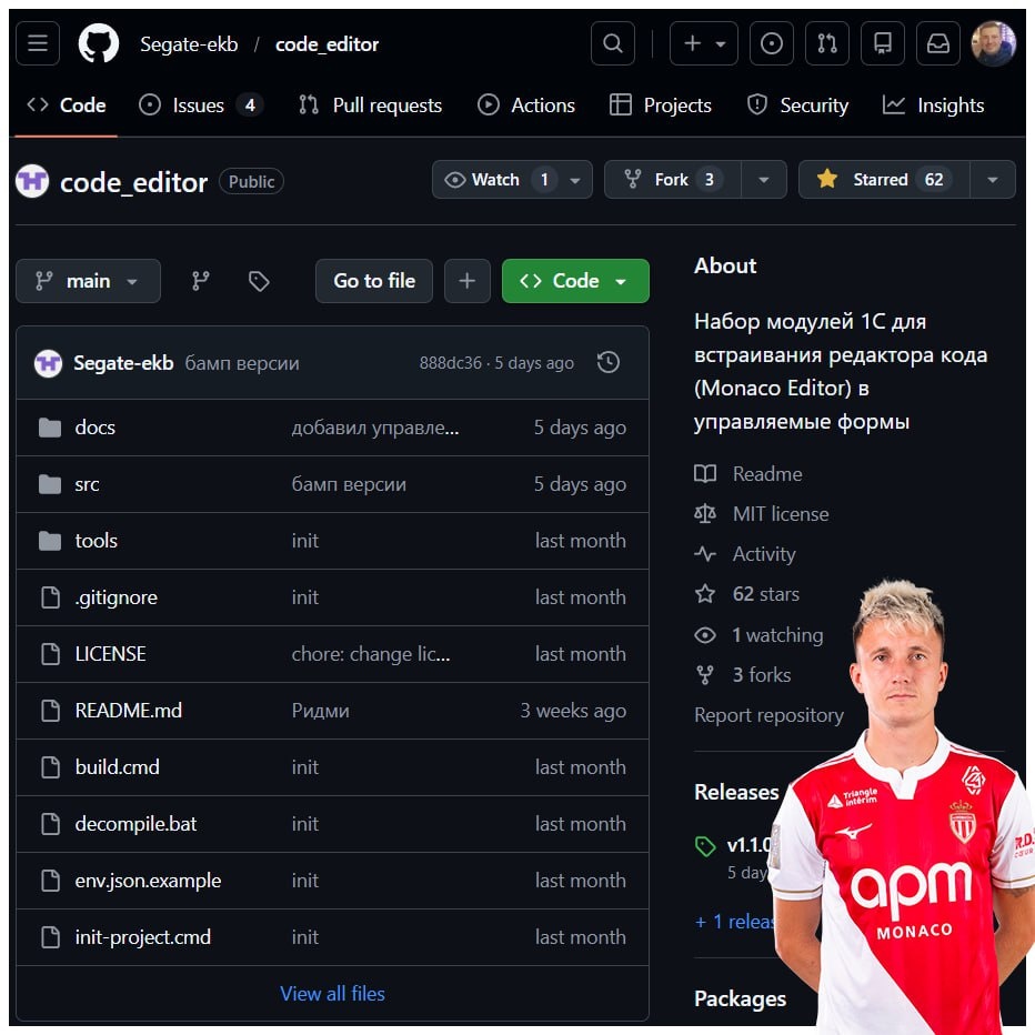 От внедора, из коробки? Нет, опенсорс... Штатное поле ввода текста в 1С не предназначено для работы с кодом - нет подсветки, нет автодополнения, нет навигации. BSL Console решает эту задачу: ▪️Консоли кода - выполнение произвольного BSL-кода прямо из формы (администрирование, быстрые скрипты, отладка с точками останова, пошаговым выполнением, остановками по ошибке, процедурами, функциями) ▪️Редакторы запросов - написание запросов 1С и выражений СКД с подсветкой и автодополнением ▪️Просмотр/редактирование текстов - JSON, XML, YAML с подсветкой синтаксиса ▪️Встроенные IDE-инструменты - любой сценарий, где пользователю нужно писать или читать код внутри 1С Пример: на форме создайте элемент ПолеHTML с именем HTML. Назначьте ему события ДокументСформирован и ПриНажатии. Вставьте код модуля формы: &НаСервере Процедура ПриСозданииНаСервере(Отказ, СтандартнаяОбработка) конс_ПодключаемаяКонсольСервер.ИнициализироватьРедактор(ЭтотОбъект, УникальныйИдентификатор); КонецПроцедуры &НаКлиенте Пр