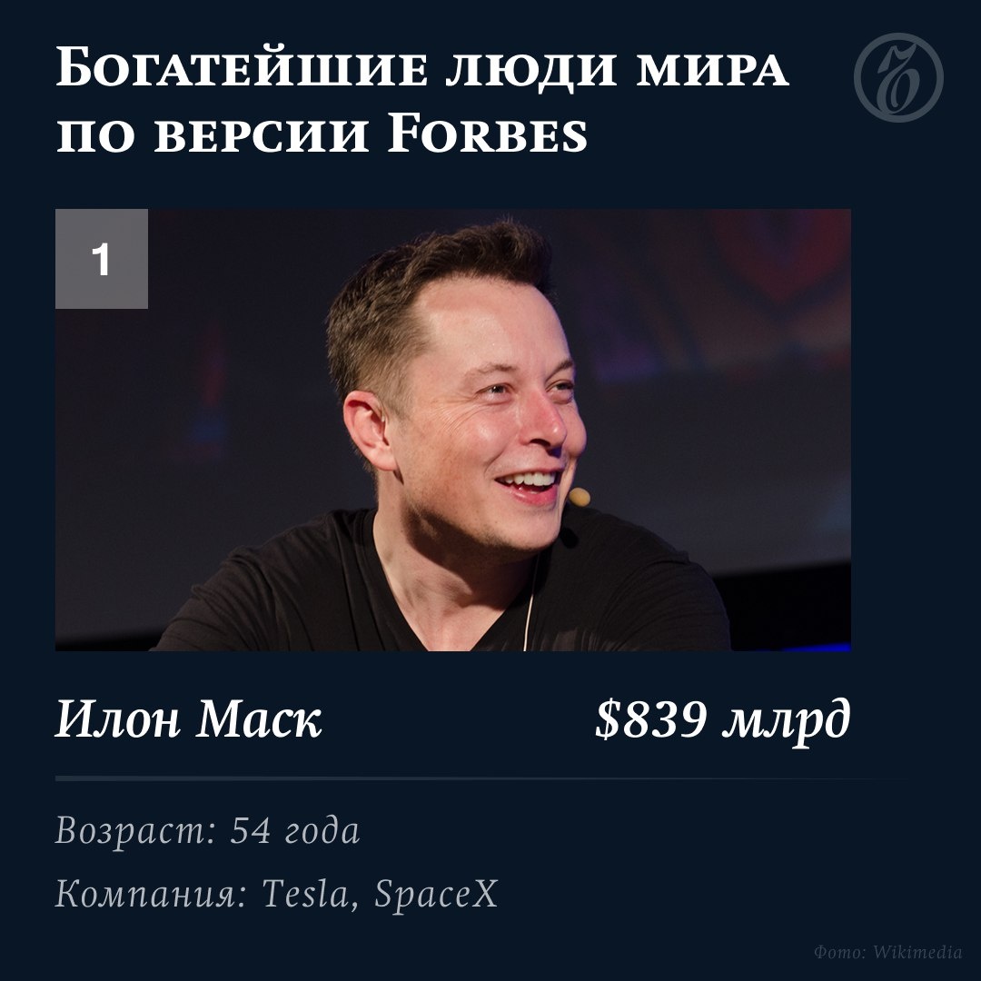 В список вошло рекордное число человек — 3428. Это на 400 больше, чем в прошлом году. Возглавил рейтинг, как и в прошлом году, основатель Tesla и SpaceX Илон Маск. Кто еще вошел в топ-10 богатейших людей мира — в галерее «Ъ». Подпишитесь на канал @oooasts