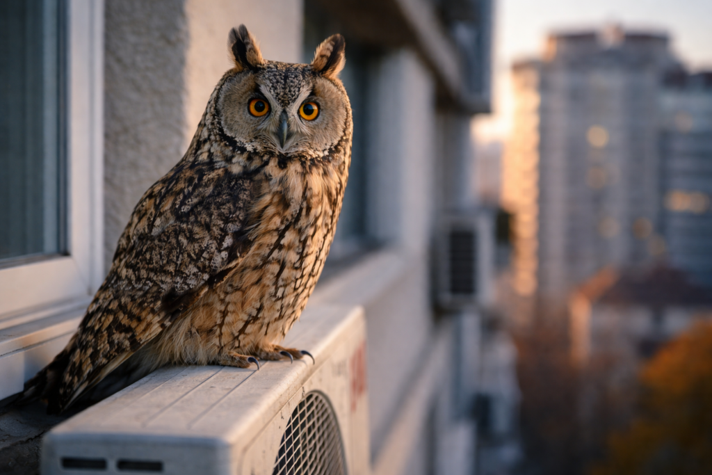 Неожиданная соседка: ушастая сова на кондиционере удивила жителей Краснодара