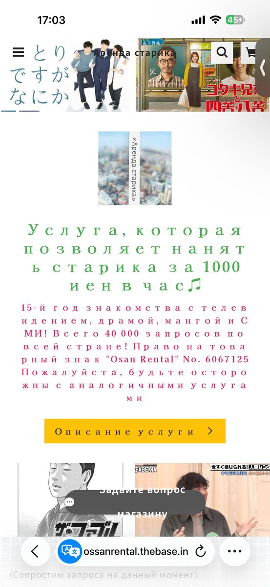 Не спрашивайте как я это нашел, но это вебсайт где можно «арендовать» пожилого японца который выступит в роли собеседника на прогулке