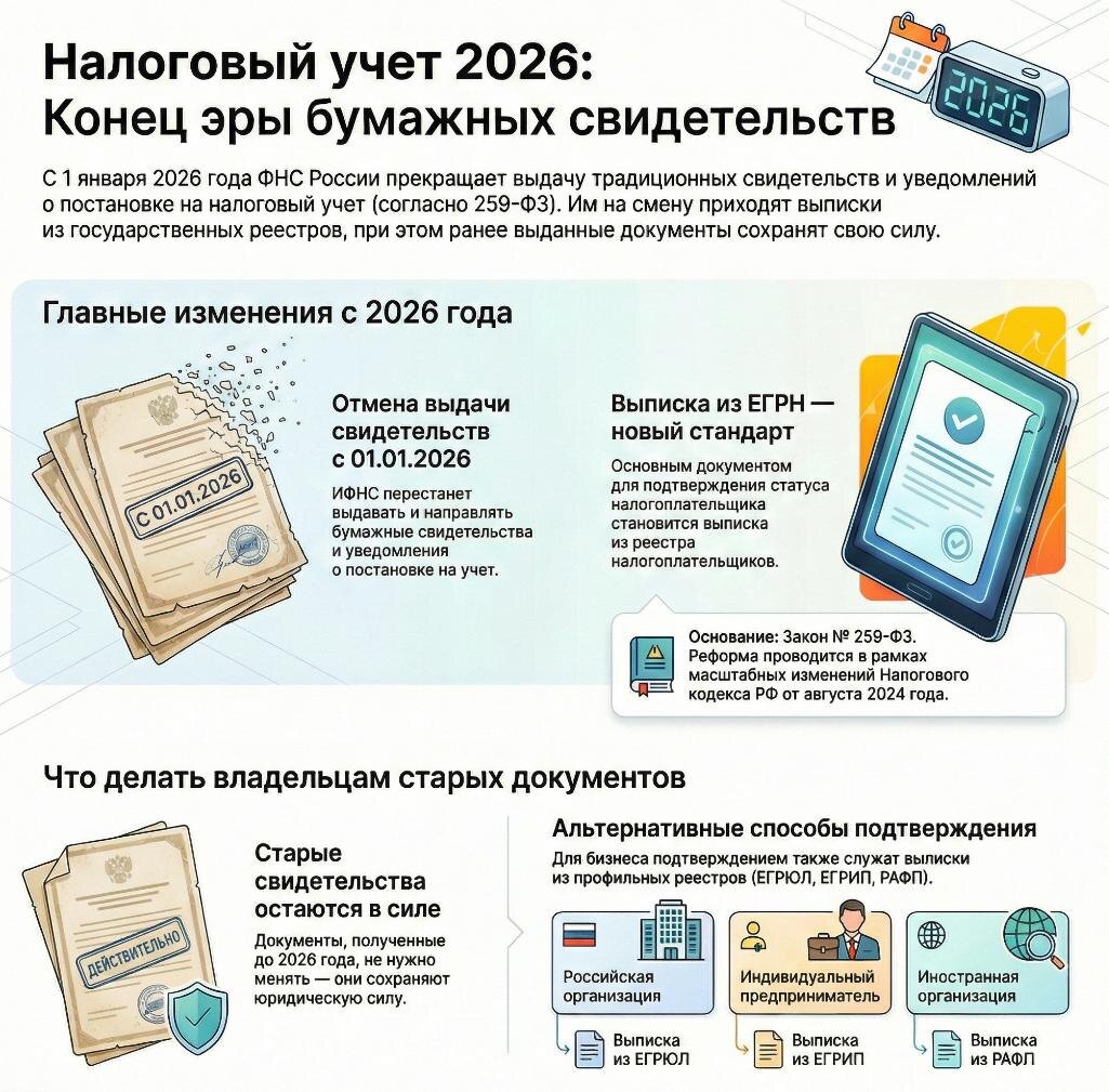 А вы знаете, что с 2026 года ИФНС не выдает свидетельство о постановки на учет?!