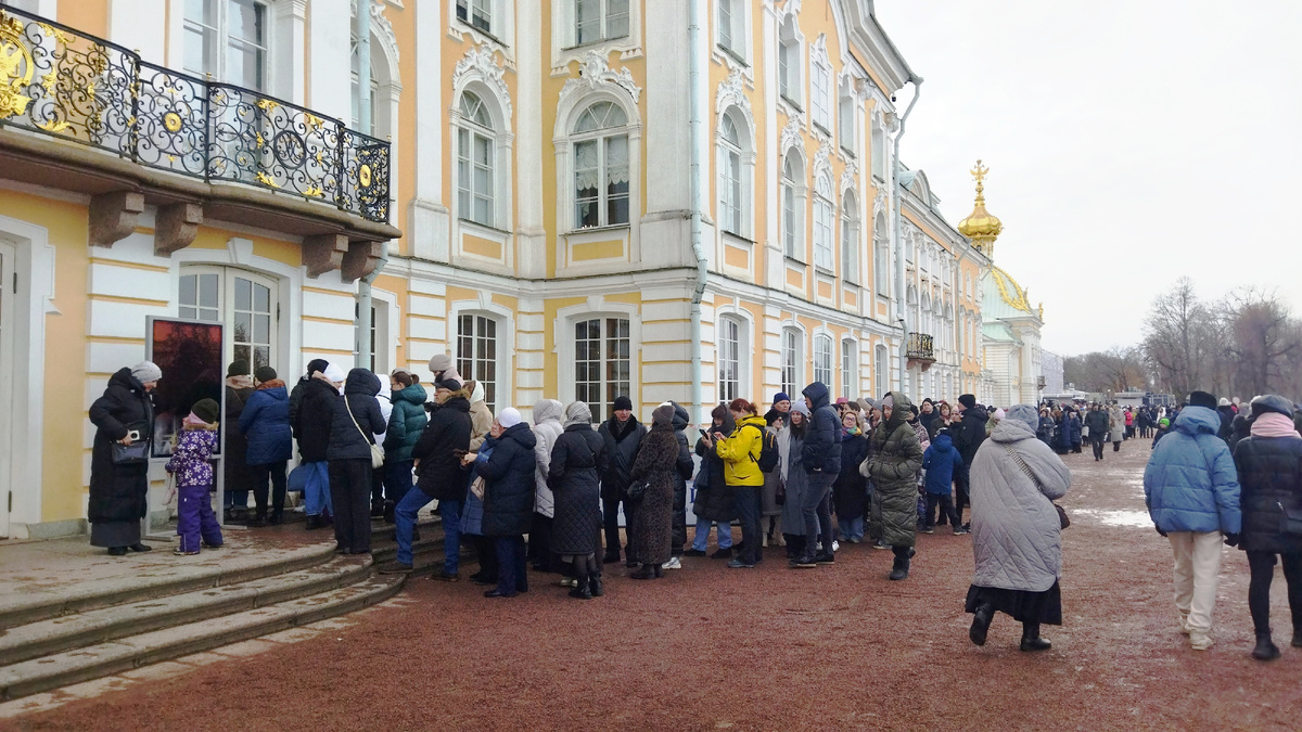 Мы стояли в очереди, которая состояла из женщин, которые стремились попасть в Большой Петергофский дворец. Даром попасть. То есть бесплатно. В честь 8-го марта.