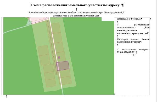 Название: Земельный участок с кадастровым номером 29:04:020602:291, расположенный по адресу: Российская Федерация, Архангельская область