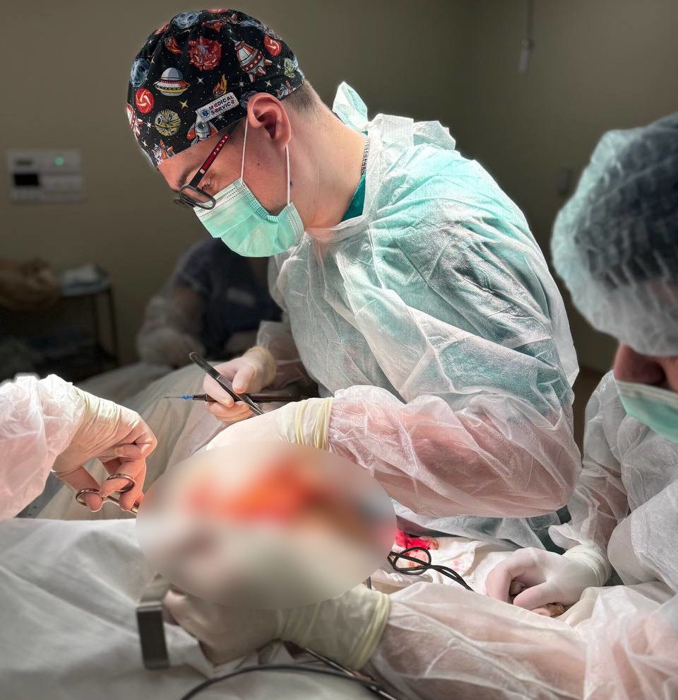 В Онкологическом центре Калининградской области проведено сложное хирургическое вмешательство — суперрадикальная мастэктомия с пластикой дефекта кожно-мышечным лоскутом широчайшей мышцы спины. Операцию проводили врачи отделения опухолей молочной железы и онкогинекологии: онколог Роман Буянкин, ассистировал заведующий отделением Олег Петренко. Пациентке 49 лет. У нее диагностирован трижды негативный рак молочной железы — одна из наиболее агрессивных форм заболевания. На первом этапе женщина получила курсы химиотерапии, однако опухоль продолжила прогрессировать. С учетом выраженного отека и воспалительных изменений на онкологическом консилиуме было принято решение о проведении хирургического лечения. Первоначально рассматривалась так называемая санитарная мастэктомия — операция, направленная на удаление первичного очага опухоли для облегчения состояния пациентки. Однако в ходе предоперационного обследования врачи отделения опухолей молочной железы и онкогинекологии приняли решение выполн