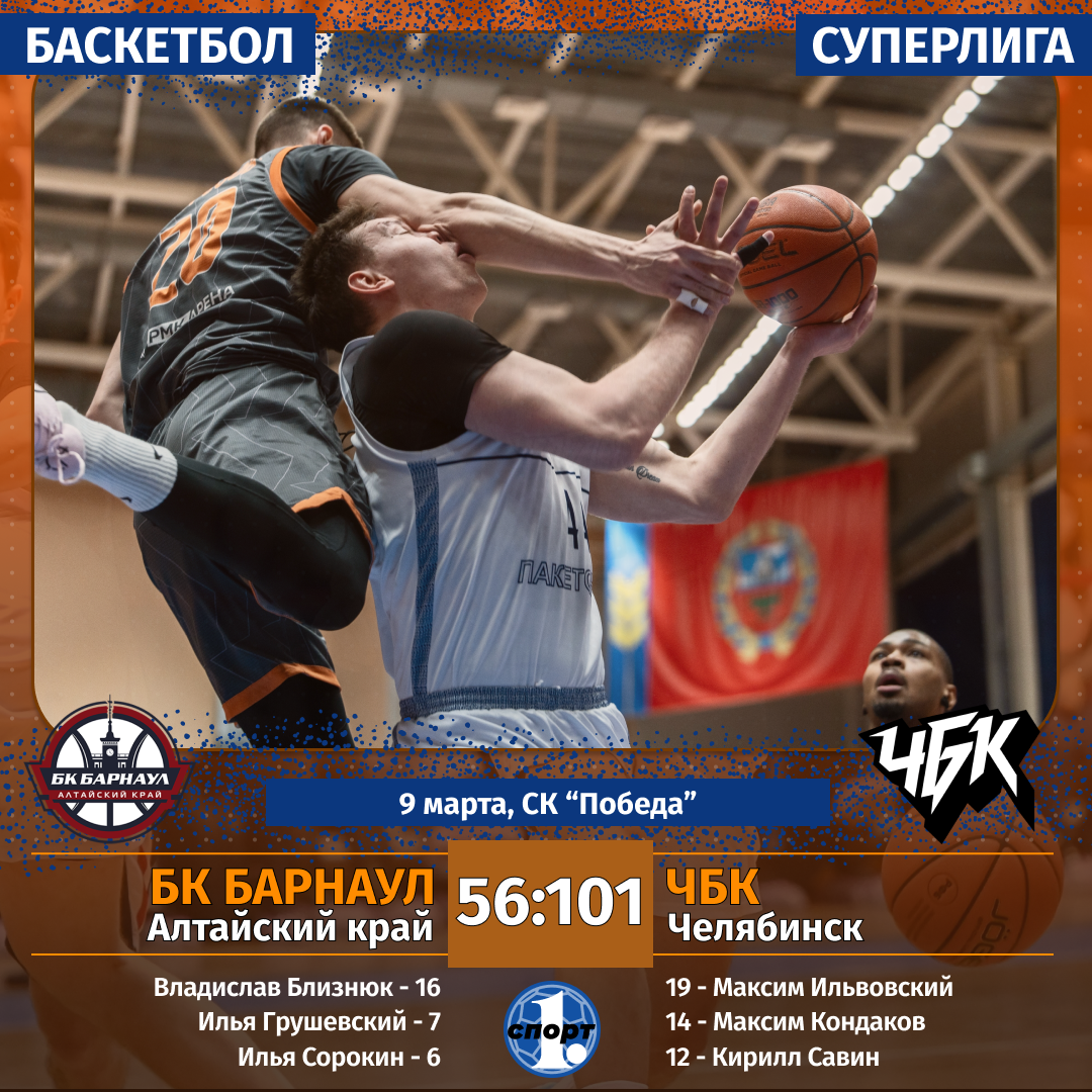 Челябинский баскетбольный клуб вернул себе лидерство в Суперлиге, одержав самую крупную победу в турнире. «ЧБК» разгромил БК «Барнаул» на его площадке со счетом 101:56. Подопечные Горана Вучковича имеют хорошие шансы впервые в своей истории выиграть регулярный чемпионат Суперлиги, сообщает корреспондент ИА «Первое областное». Накануне оступились главные конкуренты «ЧБК» в борьбе за лидерство в Суперлиге. Приморское «Динамо» уступило одноклубникам из Грозного (100:101) и дало шанс единолично возглавить турнир челябинской команде. С этой задачей подопечные Горана Вучковича успешно справились, разгромив в гостях аутсайдеров из БК «Барнаул» — 101:56. Так крупно в текущем чемпионате Суперлиги команды у соперников еще не выигрывали. А ведь ничего не предвещало разгрома. Первую половину «ЧБК» выиграл со счетом 48:35. Да, преимущество хорошее, но вполне отыгрываемое. Однако во второй половине матча челябинцев было не удержать. Кроме того, наша команда повторила высшее достижение Суперлиги‑2025