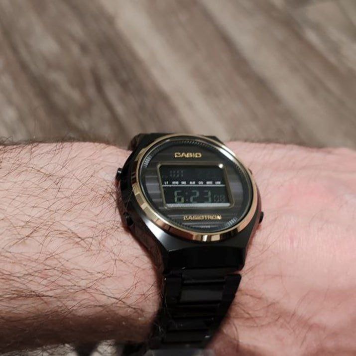 Мы сегодня #носим_wd кварцевые цифровые Casio 😁 Но не всё так просто: это лимитка к 50-летию первых электронных часов с автоматическим календарем — Casiotron (1974). Внутри это современные многофункциональные "солнечные" Casio, а снаружи — бережный возврат к легендарному дизайну. Некоторые в нашей редакции, когда их никто не может подслушать, шёпотом говорят, что это вообще один из лучших в мире юбилейных перевыпусков знаковых ретро-моделей. А вы что сегодня носите? 😉 🔶 Переходи в чат, выложи своё фото!