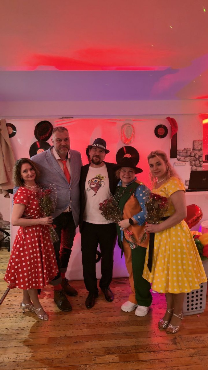 !!!! Наша шоу-программа была не просто развлекательной, но еще и немного театрализованной и ОЧЕНЬ танцевальной!!! Прежде, чем мы готовили нашу программу, мы посмотрели коллективно фильм "СТИЛЯГИ" и взяли от туда несколько важных фишечек. Перфоманс с аккордеоном, рок-н-ролл, твист, живая музыка, духовые инструменты, буги вуги., тюльпаны из воздушных шаров - всё это мы умело внесли в нашу программу и... Получилась КОНФЕТКА!!! #Многопения #Играголовой #Стиляги #Московскийбит #Мира Чудаева #Праздники #Объединениелюдей