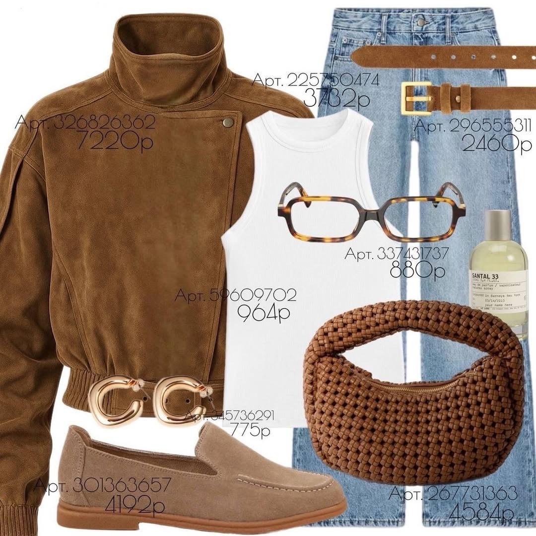 Иногда один образ может рассказать о вкусе больше, чем целый гардероб. Достаточно правильно подобрать оттенки, соединить фактуры, выстроить силуэт и добавить несколько точных акцентов — и получается комплект, который выглядит современно, дорого и очень уверенно. Именно такой образ собран на фото: мягкая замша, светлый деним, белая база, спокойные аксессуары и благородная коричневая палитра, которая никогда не выходит из моды.