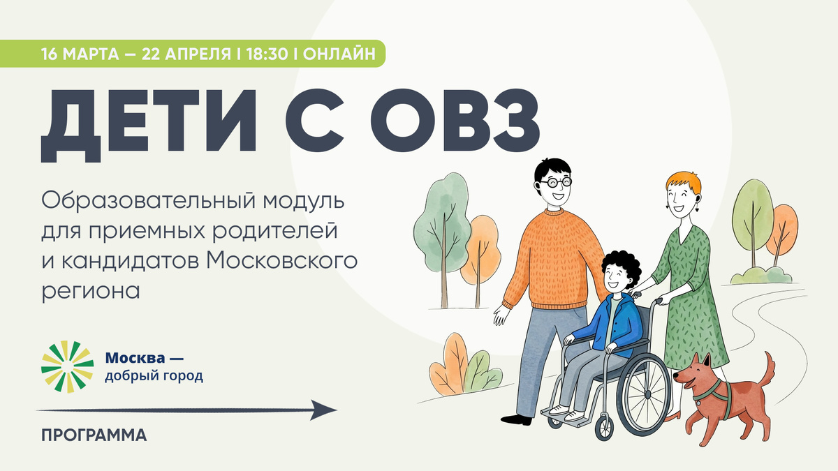 🤍 Хотите создать комфортную среду для ребёнка с особыми потребностями и выстроить с ним доверительные отношения? Присоединяйтесь к нашему образовательному модулю «Дети с ОВЗ» — осталось всего 5 дней до старта! Мы приглашаем приёмных родителей и кандидатов из Москвы и Московской области на 12 практических занятий от опытных психологов и профильных специалистов. 📌 Условия участия: наличие свидетельства об окончании базового курса ШПР. 🗓 Когда: 16 марта — 22 апреля 2026 года 📅 Дни: по понедельникам и средам ⏰ Время: с 18:30 до 22:00 (мск) 💻 Формат: онлайн РЕГИСТРАЦИЯ 💡 Модуль проводится в рамках проекта «Семья каждому ребёнку: комплексная поддержка семейного устройства г. Москвы» при поддержке гранта «Москва — добрый город».