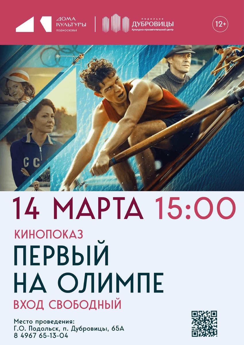 ✨ Кинопоказ «Первый на олимпе» (реж. Артём Михалков) Продолжительность: 1 час 50 минут 🚫 Возраст: 12+ 📆 14.03.2026 🕒 15:00 🏢 Культурно-просветительский центр "Дубровицы" 📍 г.о. Подольск, поселок Дубровицы, д. 65А 💰 Вход свободный❗️ ⭐Поддержать канал голосом 🍰Где поесть в Подольске ✅ Мероприятия Подольск https://dzen.ru/id/66ed500f7b5671493eca3fd6 https://vk.ru/podolsk_events http://dzen.ru/podolsk_events