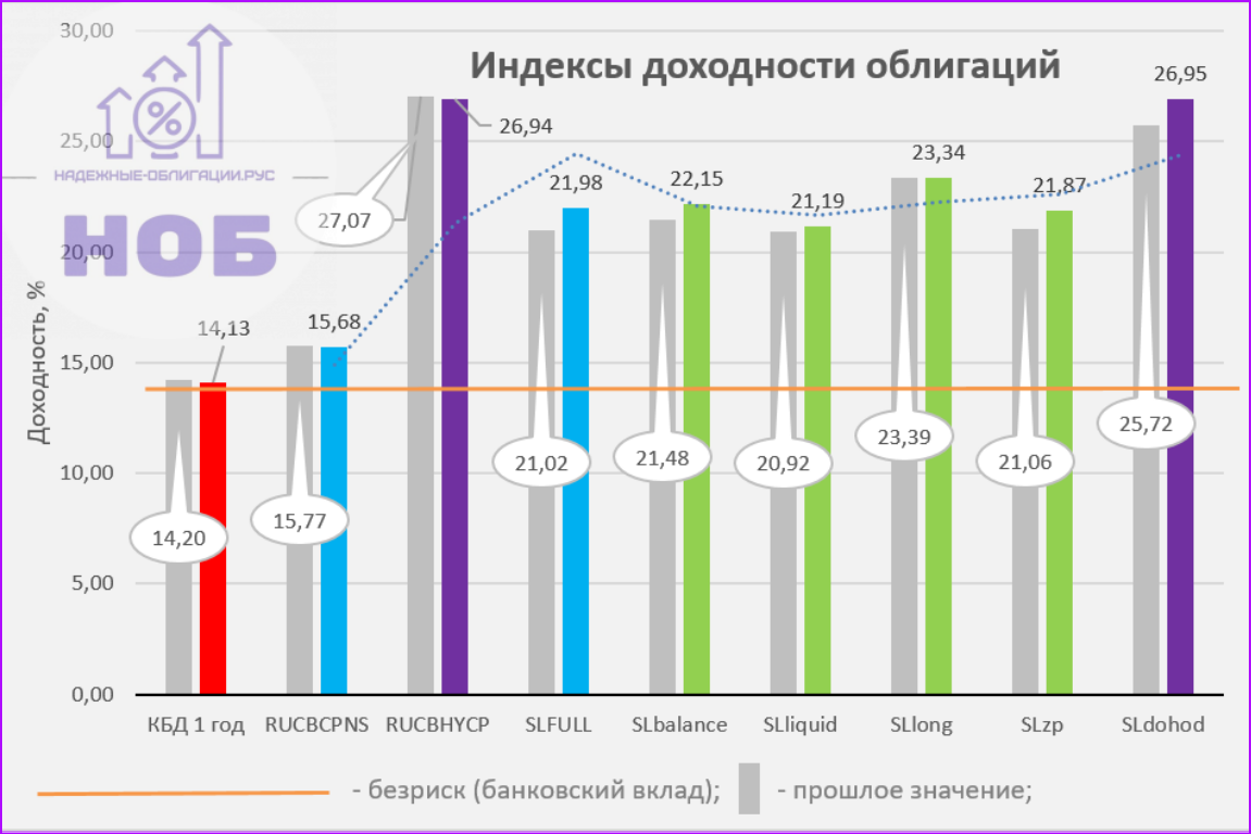 ✅ Максимальная процентная ставка по вкладам, публикуемая Банком России, 14,06% на третью декаду февраля. Хоть по чуть-чуть, но постоянно снижается; ✅ Индекс ОФЗ (КБД публикуется на сайте Мосбиржи) с дюрацией 1 год (КБД 1 год на графике👆) - почти без изменений; ✅ Индекс корпоративных облигаций RUCBCPNS (публикуется на сайте Мосбиржи) - ведёт себя аналогично максимальной ставке по вкладам; ✅ Индекс высокодоходных облигаций RUCBHYCP (публикуется на сайте Мосбиржи) - почти без изменений; 📌 Индекс полной доходности Списка Лучших облигаций 2026 SLFULL рост почти на процент. В Список вошло 64 облигации вместо 65 ранее, общий порог входа по YTM/CY не менялся. ✅ Индекс SLbalance портфеля СБАЛАНСИРОВАННЫЙ - рост более 0,5%; ✅ Доходность ликвидной части Списка SLliquid - почти без изменений; ✅ Индекс портфеля ДОЛГОСРОЧНЫЙ SLlong - почти без изменений; ✅ Индекс облигаций с ежемесячным купоном SLzp - рост почти на процент; ✅ Портфель ДОХОДНЫЙ (индекс SLdohod) - рост более процента. Как формируютс