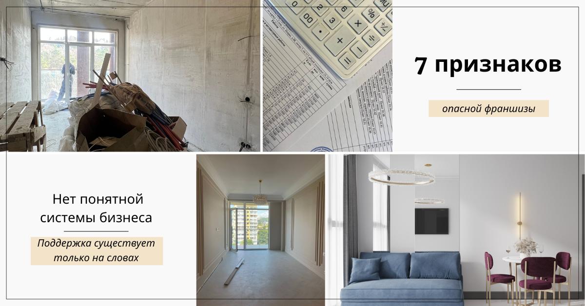 Каждый год тысячи людей покупают франшизы, рассчитывая получить готовую систему бизнеса. Логика кажется простой: есть бренд, есть опыт компании, есть инструкции - значит, риски меньше. Но на практике всё не так однозначно. Очень часто человек понимает, что попал в проблемную франшизу уже после оплаты паушального взноса. И вернуть деньги или изменить условия почти невозможно. Мы много работаем в сфере ремонта квартир, дизайна интерьера и строительного бизнеса, и регулярно общаемся с предпринимателями, которые интересуются запуском франшизы. Поэтому решили разобрать 7 признаков опасной франшизы, в которую лучше не входить - даже если презентация выглядит красиво. Первый тревожный сигнал - когда за красивой презентацией нет реальной системы. Многие франшизы продают идею, но не продают процессы. В итоге партнёр получает логотип, пару документов и общие рекомендации, но не получает главного - структуры работы. В любой сложной сфере, будь то ремонт квартир под ключ, дизайн интерьера, строите