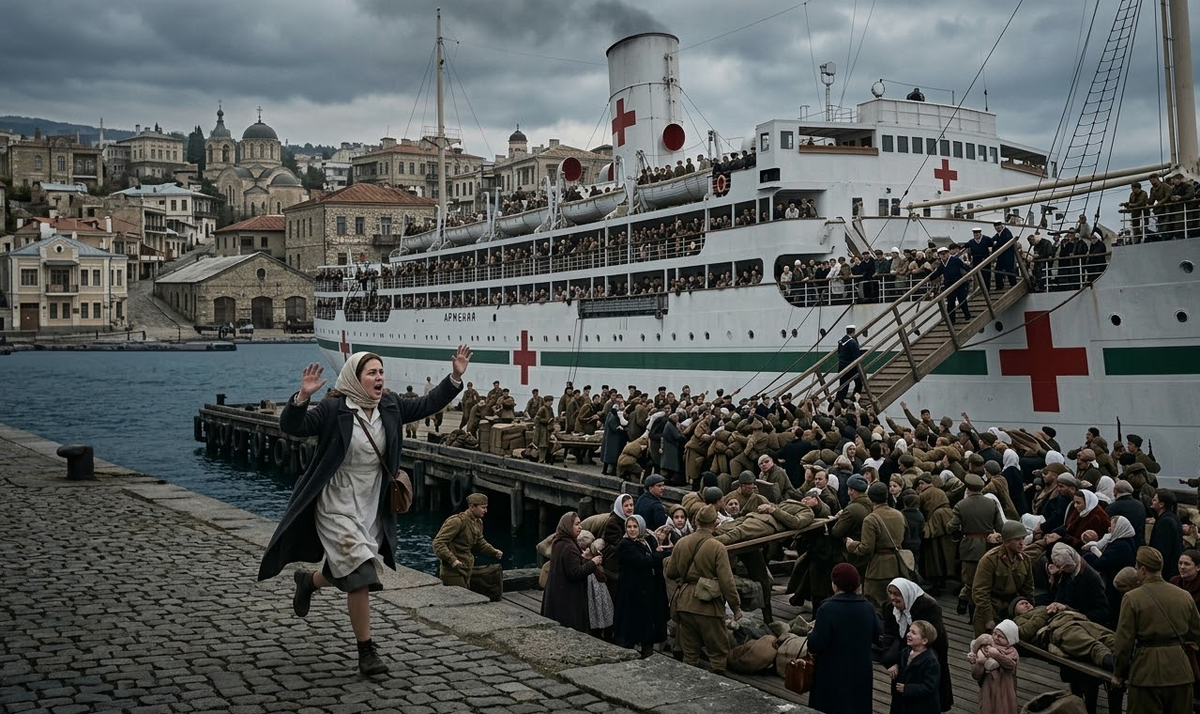 7 ноября 1941 года. Ялтинский порт. Госпитальное судно «Армения» стоит у причала — последний борт перед захватом Крыма. На пирсе давка. Кричат раненые, плачут дети. Медсестра Вера Строганова бежит по набережной и видит, как трап убирают. Она машет руками. Её не замечают. Или замечают — и всё равно убирают.