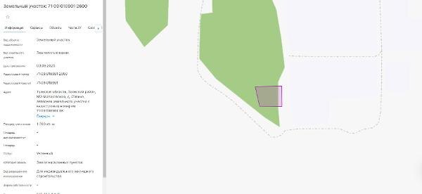 Название: право заключения договора аренды земельного участка из земель населенных пунктов с кадастровым номером 71:09:010901:2600, площадью