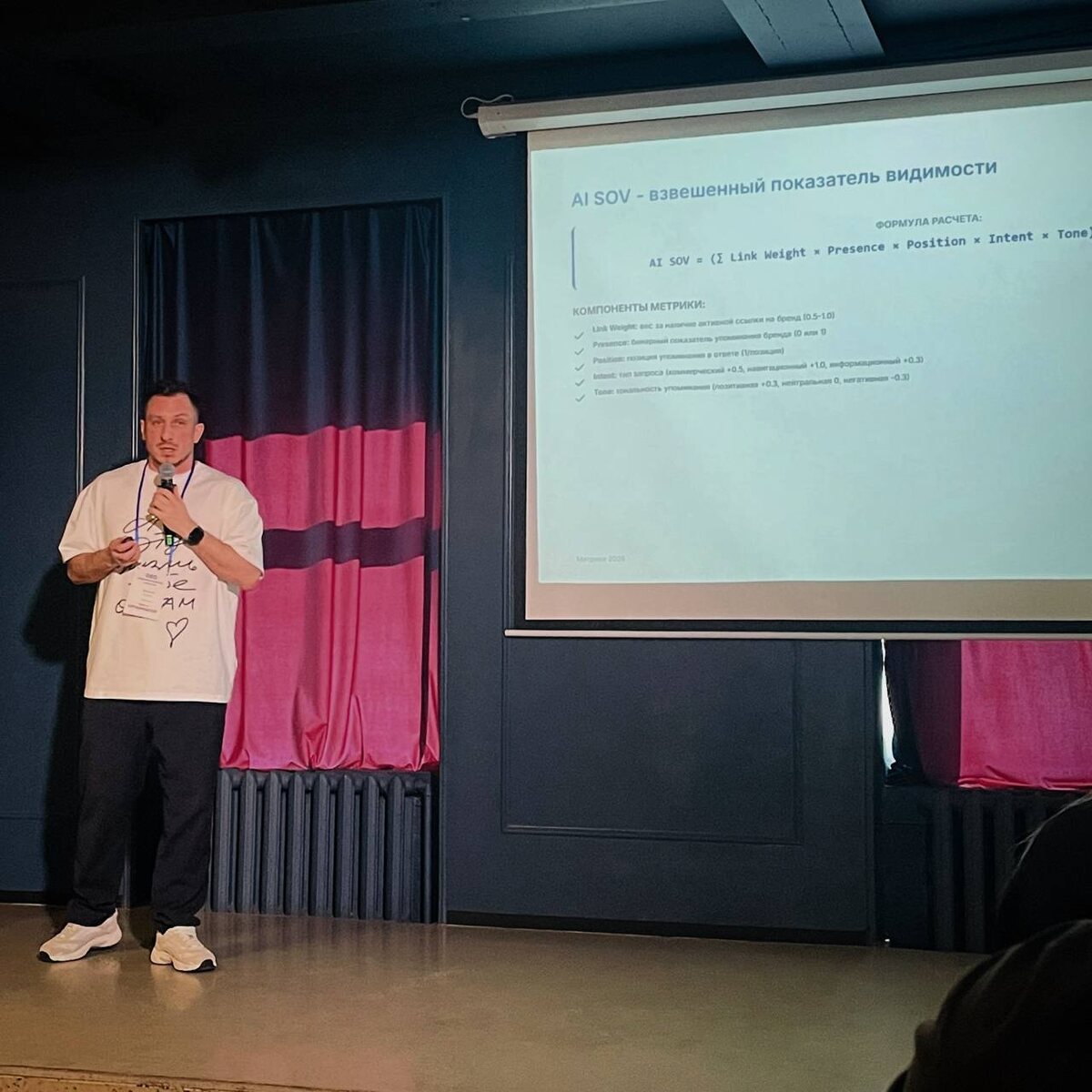 ФОРМУЛА РАСЧЕТА: AI SOV = (2 Link Weight × Presence × Position × Intent x Tone) / Total Responses КОМПОНЕНТЫ МЕТРИКИ: く Link Weight: вес за наличие активной ссылки на бренд (0.5-1.0) Presence: бинарный показатель упоминания бренда (0 или 1) Position: позиция упоминания в ответе (1/позиция) Intent: тип запроса (коммерческий +0.5, навигационный +1.0, информационный + 0.3) Tone: тональность упоминания (позитивная +0.3, нейтральная 0, негативная -0.3) P.S.: Видимо сегодня я закрою прорехи в знаниях ро SEO 😁
