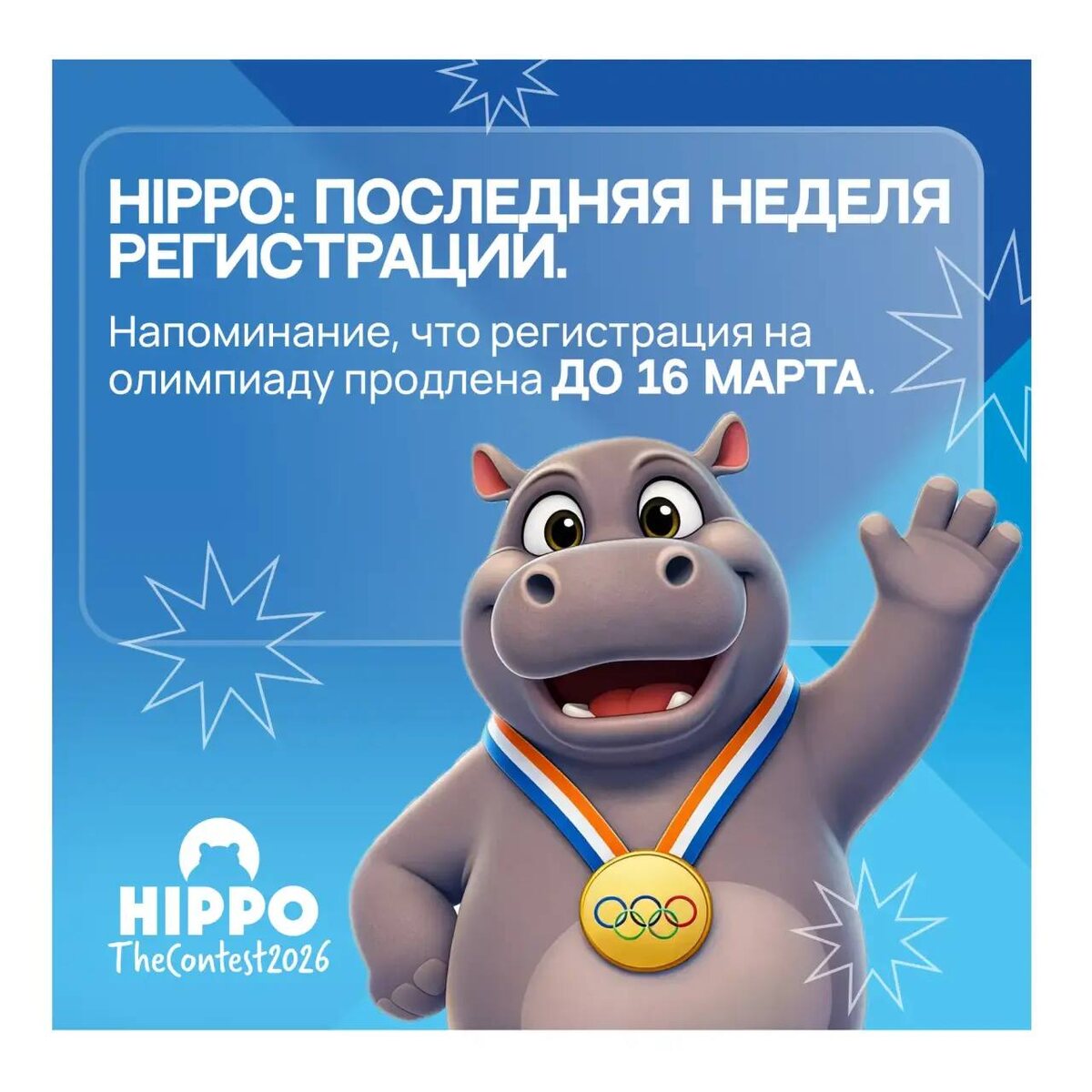 ! 🚂 Друзья, у нас для вас две новости (и обе хорошие!): 👀 Во-первых, регистрацию на олимпиаду Hippo 2025 ПРОДЛИЛИ до 16 марта. 😉 Во-вторых, это значит, что у вас всё ещё есть шанс принять участие в самом масштабном лингвистическом событии этого года! 🇬🇧 Если вы всё ещё думаете, вот несколько фактов, которые помогут принять решение: 👇 ✨ 70+ стран мира, 90 000+ участников ✨ Каждый школьник и студент сможет проверить свой уровень от Beginner до Advanced — олимпиада структурирована по уровням, каждый из которых соответствует возрасту и уровню владения английским языком. ✨ Этапы = Путешествия Это не просто олимпиада, это настоящее приключение с возможностью увидеть новые страны! Запоминаем: 🏫 20–21 марта — предварительный тур на площадке Lingwin 💪 23–24 апреля — национальный финал 🇦🇿 Июнь — полуфинал в Баку 🇮🇹 Октябрь — мировой финал в Ассизи, Италия! ✨ Тысячи увлеченных ребят, живое общение, обмен опытом и настоящая мотивация расти дальше. 😍 Стоимость участия за весь кон