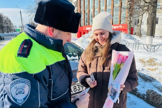 Накануне Международного женского дня сотрудники отделения Госавтоинспекции МО МВД России «Ковровский» устроили праздничный рейд. Экипаж ДПС в составе командира отдельного взвода ДПС майора полиции Михаила Матюнина, командира 1 взвода ОР ДПС капитана полиции Антона Сутырина и инспектора ОР ДПС лейтенанта полиции Михаила Николаева останавливал машины, за рулём которых находились представительницы прекрасного пола, чтобы вручить им цветы. Автоинспекторы поздравляли автоледи с наступающим праздником, желали безопасных дорог и напоминали о необходимости неукоснительно соблюдать Правила дорожного движения – ради сохранения жизни, красоты и здоровья. Женщины с искренними улыбками и неподдельным удивлением принимали поздравления и, в свою очередь, обещали быть внимательными за рулём и не нарушать ПДД. Акция прошла в тёплой и праздничной атмосфере, подарив участницам дорожного движения положительные эмоции.