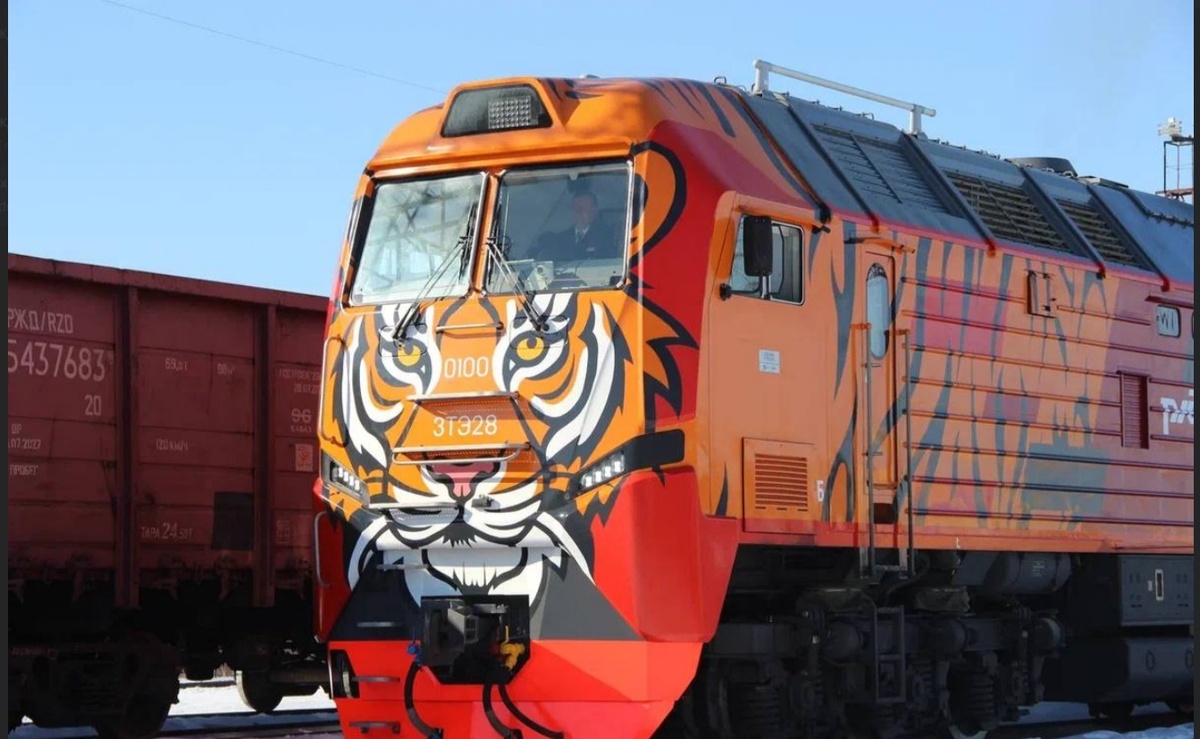 Он специально создан для северного климата. В Тынде торжественно встретили новый магистральный тепловоз «3ТЭ28» под юбилейным номером 100. Тепловоз отличает яркая окраска, имитирующая окрас амурского тигра. Этот дизайн посвящен вкладу РЖД в сохранение и защиту редкого хищника, сообщили в новостном портале Дальневосточной железной дороги, являющейся филиалом ОАО «РЖД». Локомотив стал одним из шести, поступивших на Дальневосточную железную дорогу. Машины преодолели 7,5 тысяч километров до столицы БАМа и теперь будут работать на маршрутах этой магистрали. «3ТЭ28» специально создан для сложных северных условий. Он тянет поезда весом до 7 100 тонн, оснащен современными системами управления. В кабине машиниста предусмотрены улучшенная эргономика, микроклимат и безопасность. На Дальневосточной магистрали работают более 70 таких тепловозов. Фото Дальневосточной РЖД Читать на сайте ТЕЛЕПОРТ.РФ Еще больше новостей: