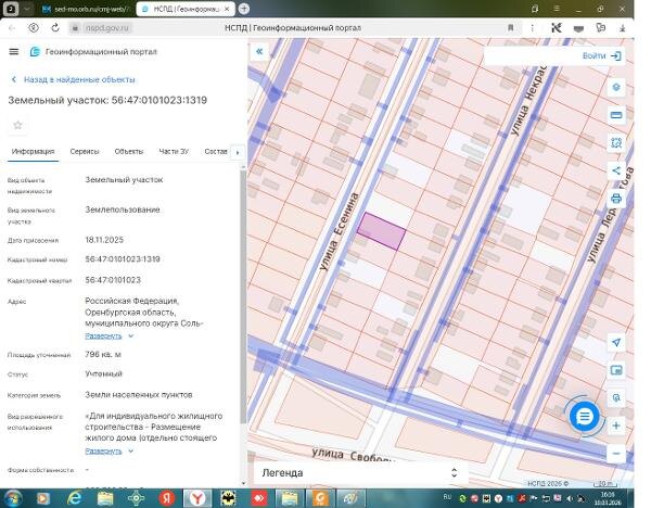Название: Земельный участок с кадастровым номером 56:47:0101023:1319, площадь 796 кв.м., по адресу Российская Федерация, Оренбургская