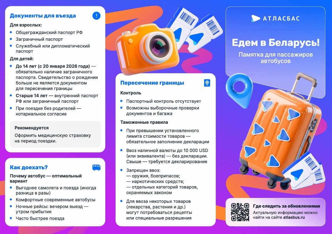 Собрали лайфхаки о наличных, документах, мобильной связи и интернете. Популярность Беларуси у российских туристов растет. И это легко объяснить: страна привлекает атмосферой уютных городов с европейским шармом, красивой архитектурой и историей, которую можно буквально прочувствовать на улицах. Добавьте вкусную кухню и натуральные продукты, классные санатории, спокойную атмосферу, чистые улицы и традиционное белорусское гостеприимство – вот основные причины, почему в страну едут гости из России. Все больше туристов выбирают для таких поездок автобус. У этого вида транспорта есть свои преимущества: маршруты соединяют города напрямую, без пересадок и сложной логистики, а сами поездки зачастую оказываются удобнее и выгоднее, чем перелеты или железная дорога. Кстати, большинство рейсов – ночные. Это удобно: вечером выехал – утром в нужном городе, а значит весь день впереди. Чтобы путешествие было максимально комфортным, сервис Атласбас подготовил для пассажиров специальную памятку о Белару