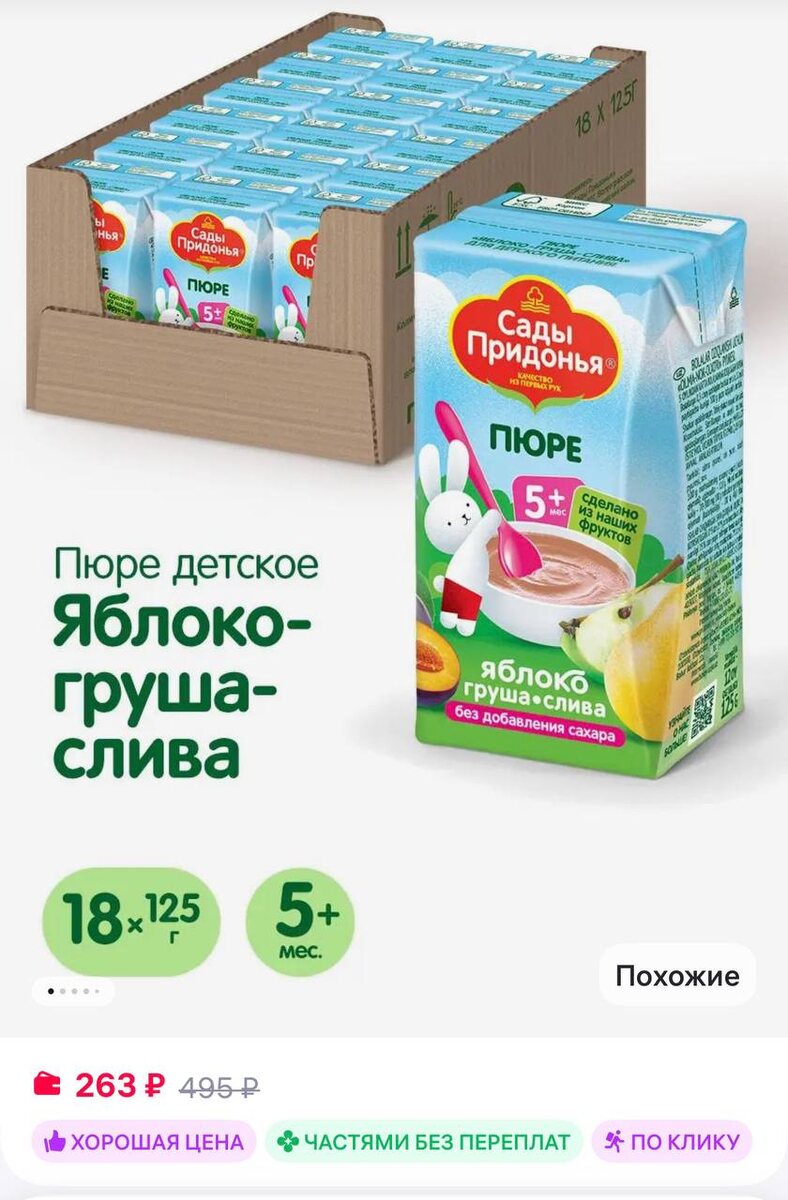 Сады Придонья Пюре яблоко-груша-слива 125г, с 5 мес (18шт)