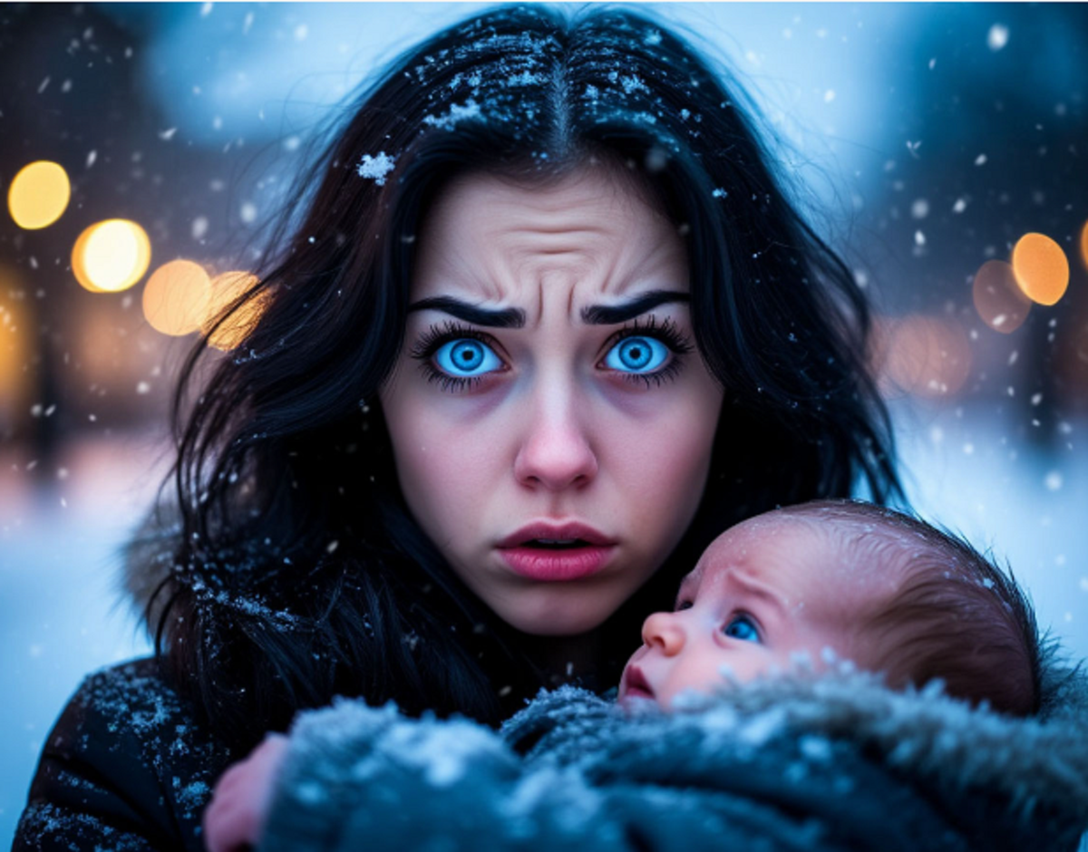 Аня спустилась вниз, вышла на улицу. Мороз ударил в лицо, перехватил дыхание. Ребёнок заплакал громче.