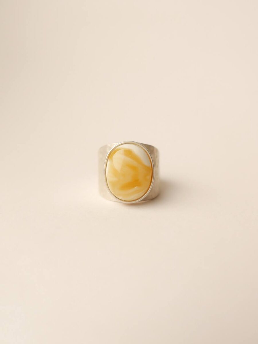 В каждом экземпляре камень будет разным — по форме, рисунку и оттенку. Но именно металл задаёт общее настроение: насколько образ получается тёплым, спокойным или более графичным. Матовая позолота — тёплая подача без активного блеска; — мягко поддерживает природную палитру янтаря и выглядит особенно гармонично в спокойных, «тёплых» образах; — даёт ощущение собранности без нарядного глянца. Матовое серебро — максимально нейтральное и универсальное покрытие; — не перетягивает внимание на металл и оставляет камень главным; — хорошо вписывается в повседневный гардероб и разные фактуры. Глянцевое серебро — более заметный, чистый блеск; — делает силуэт перстня чётче и графичнее; — добавляет образу контраст и структуру, особенно в сочетании с лаконичными вещами. Центр композиции в каждом экземпляре — янтарь, а покрытие помогает по-разному его «собрать» в образ: теплее, спокойнее или более структурно. А какой металл выбираете вы? - делитесь в комментариях, ваша обратная связь очень важна д