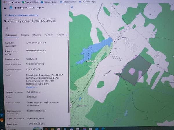 Название: Земельный участок с кадастровым номером 43:03:370501:228, площадь 752952 кв